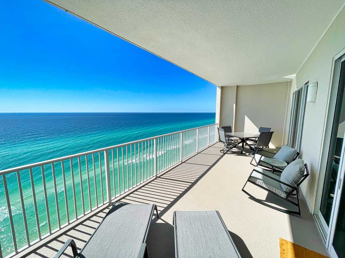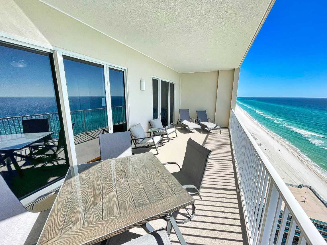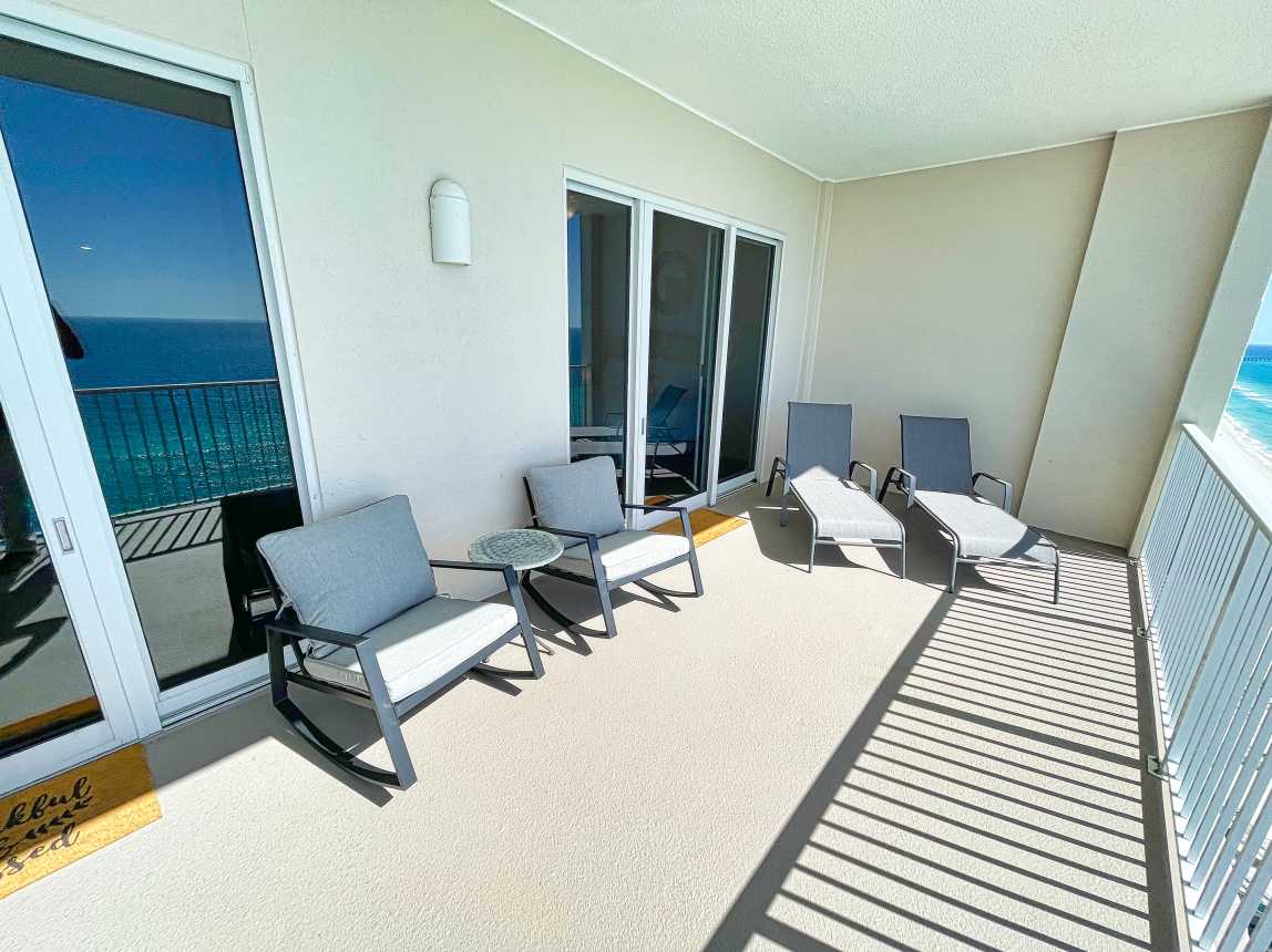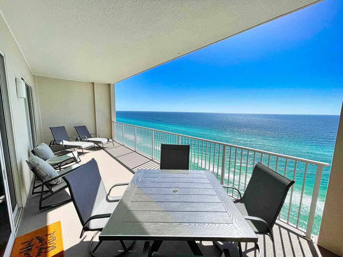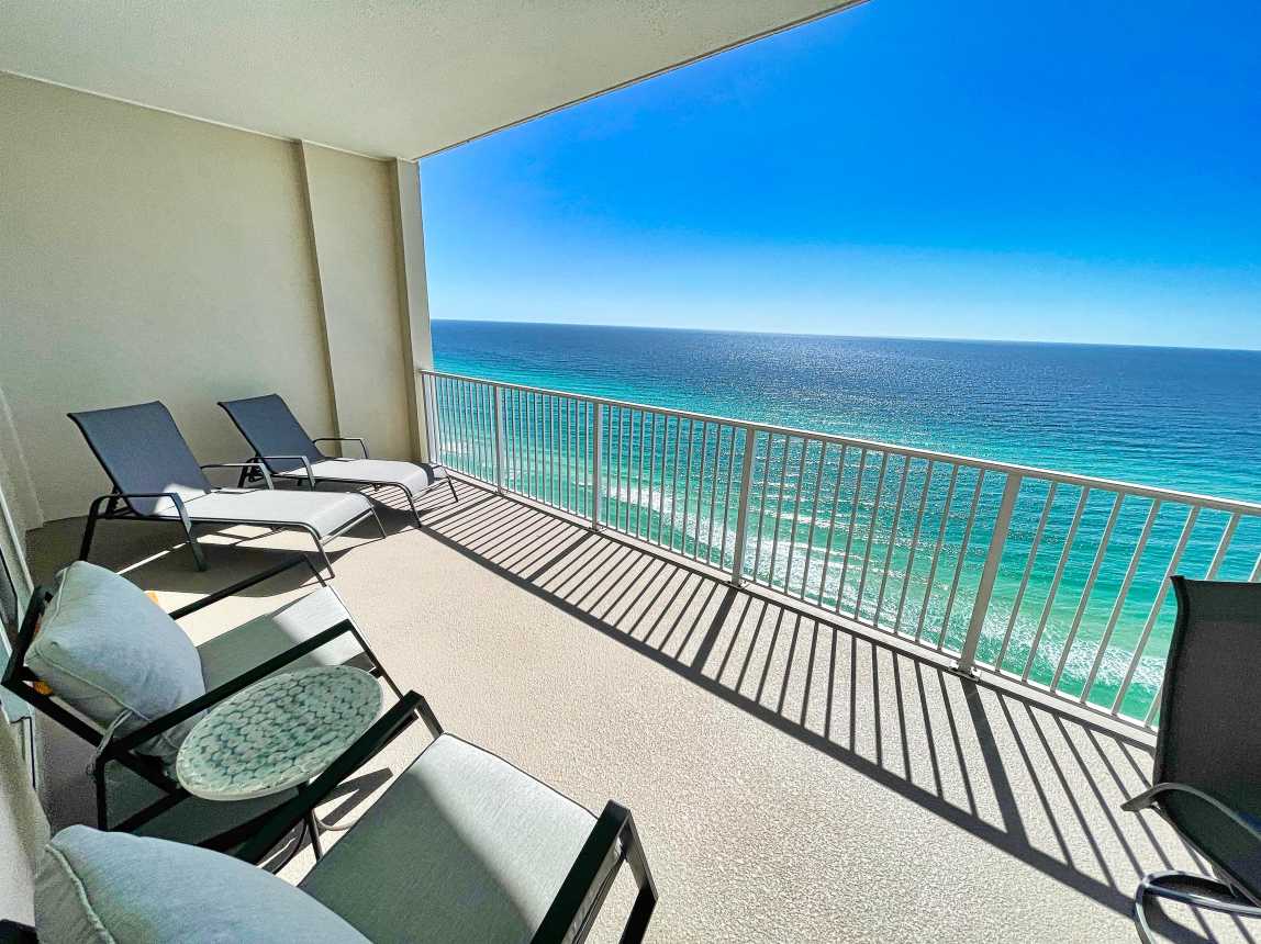 Book this gulf-front, 2 bedroom, condo overlooking the sandy beaches of the Gulf of Mexico! Enjoy one of the largest balconies you'll find, in Panama City Beach, with room for everyone. The condo has a reserved parking space, close to the elevators.