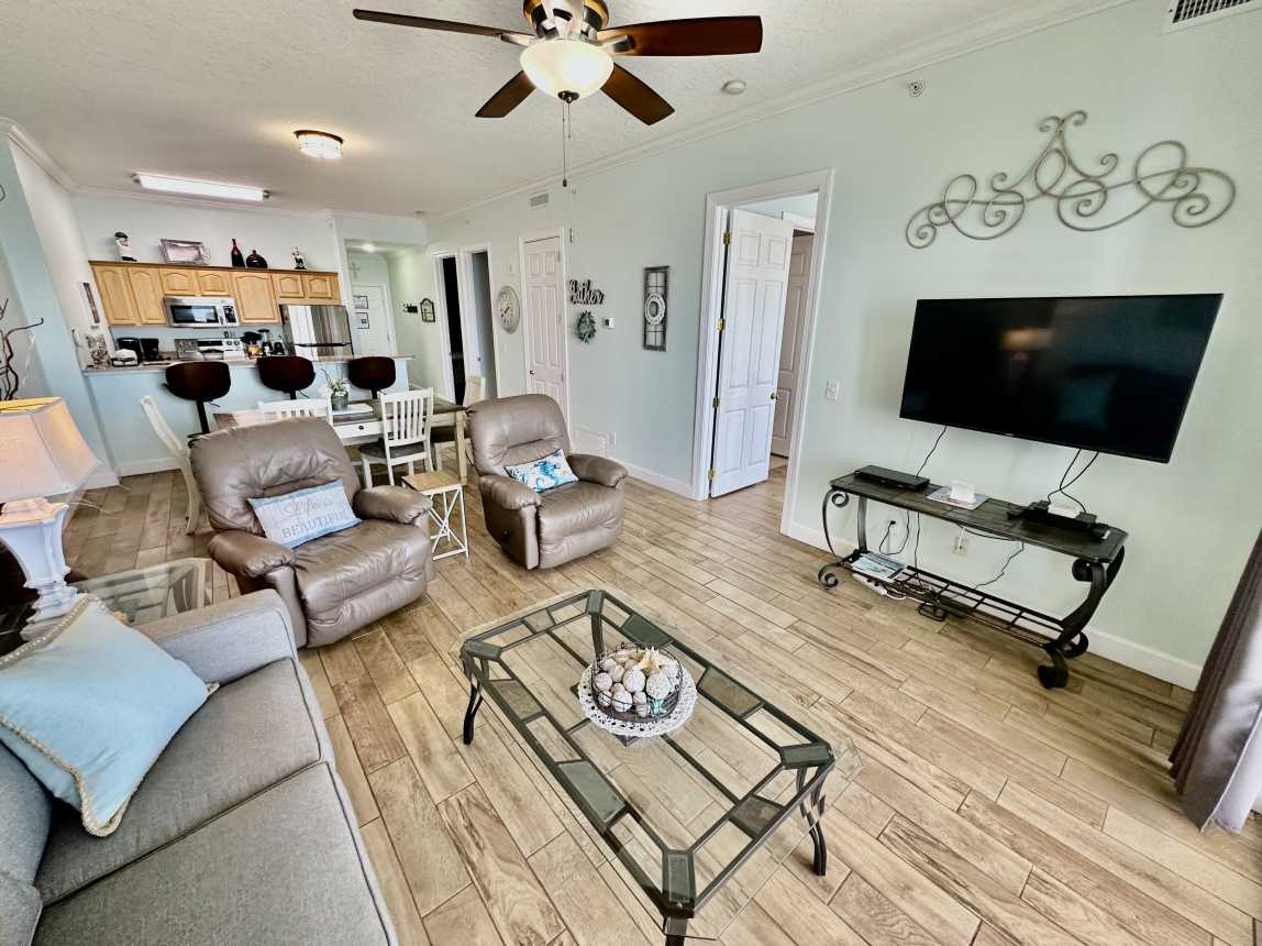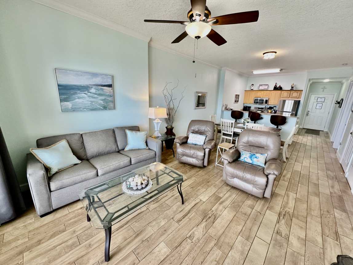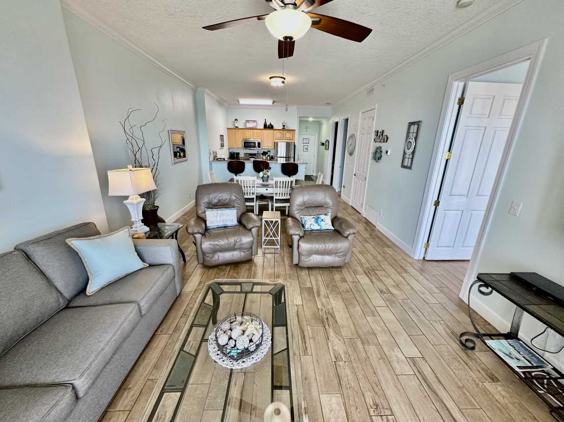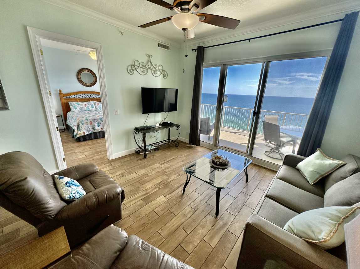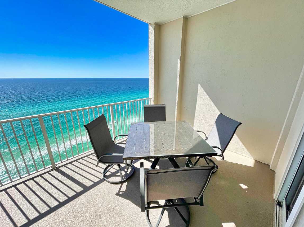 Book this gulf-front, 2 bedroom, condo overlooking the sandy beaches of the Gulf of Mexico! Enjoy one of the largest balconies you'll find, in Panama City Beach, with room for everyone. The condo has a reserved parking space, close to the elevators.