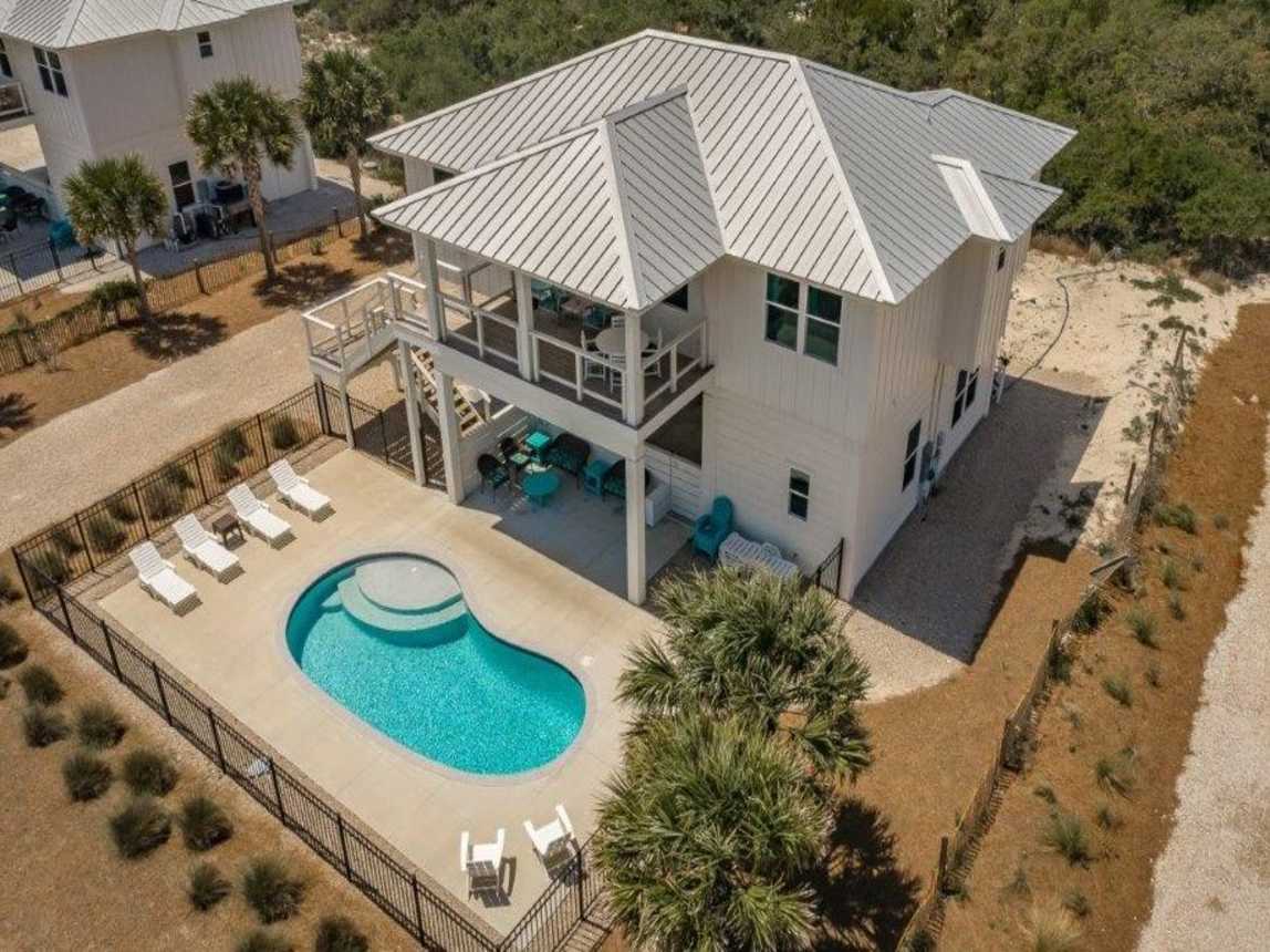 Newly constructed in 2020, Little Kokomo was built to please and was designed and furnished for your ultimate comfort and enjoyment. This conveniently located 2050 sq ft home with gulf views has 4 bedrooms and 2 full bathrooms upstairs and a poolside, separate-entry game room/living space with full bathroom downstairs.