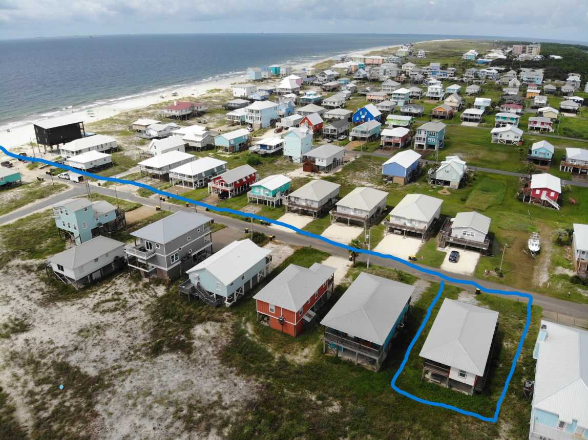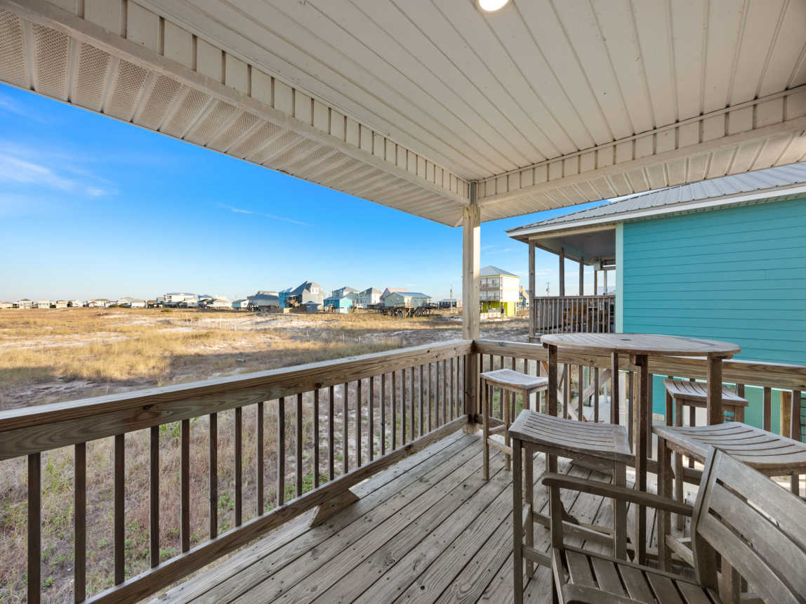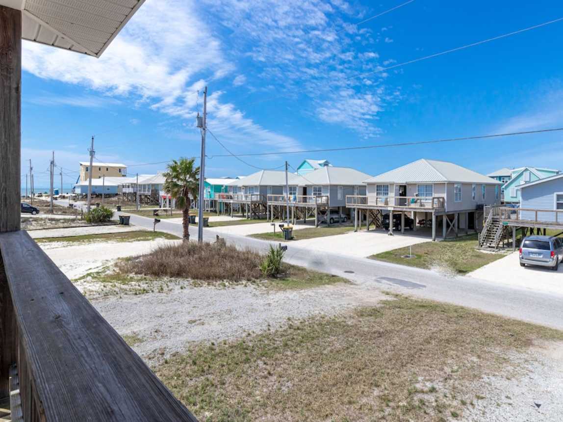 This beach home in the Fort Morgan area of Gulf Shores offers a tranquil retreat with breathtaking views. The updated three-bedroom, two-bathroom house features a private deck off the master bedroom, providing a serene spot to take in the fantastic vistas of the Gulf of Mexico and Mobile Bay.