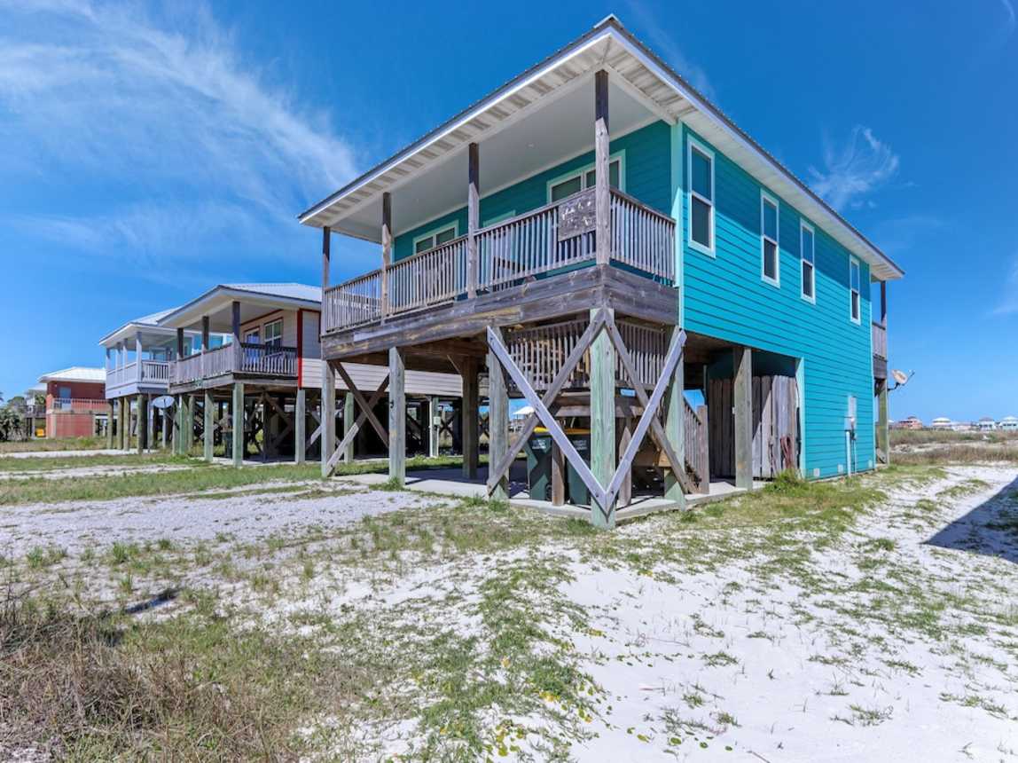Cabinets updated, granite installed, new tile and other updates completed 2025. Professional Photos coming soon.Nestled in the tranquil Fort Morgan area of Gulf Shores, this beach house offers a peaceful escape, ensuring a serene environment free from bustling commercial activity or large condominium complexes. Relax on the covered deck and enjoy breathtaking views of the Gulf of Mexico and Mobile Bay, just steps away from the uncrowded, white sandy beach. Spend your days beachcombing, dolphin-watching, and swimming in the clear blue waters of the Gulf.