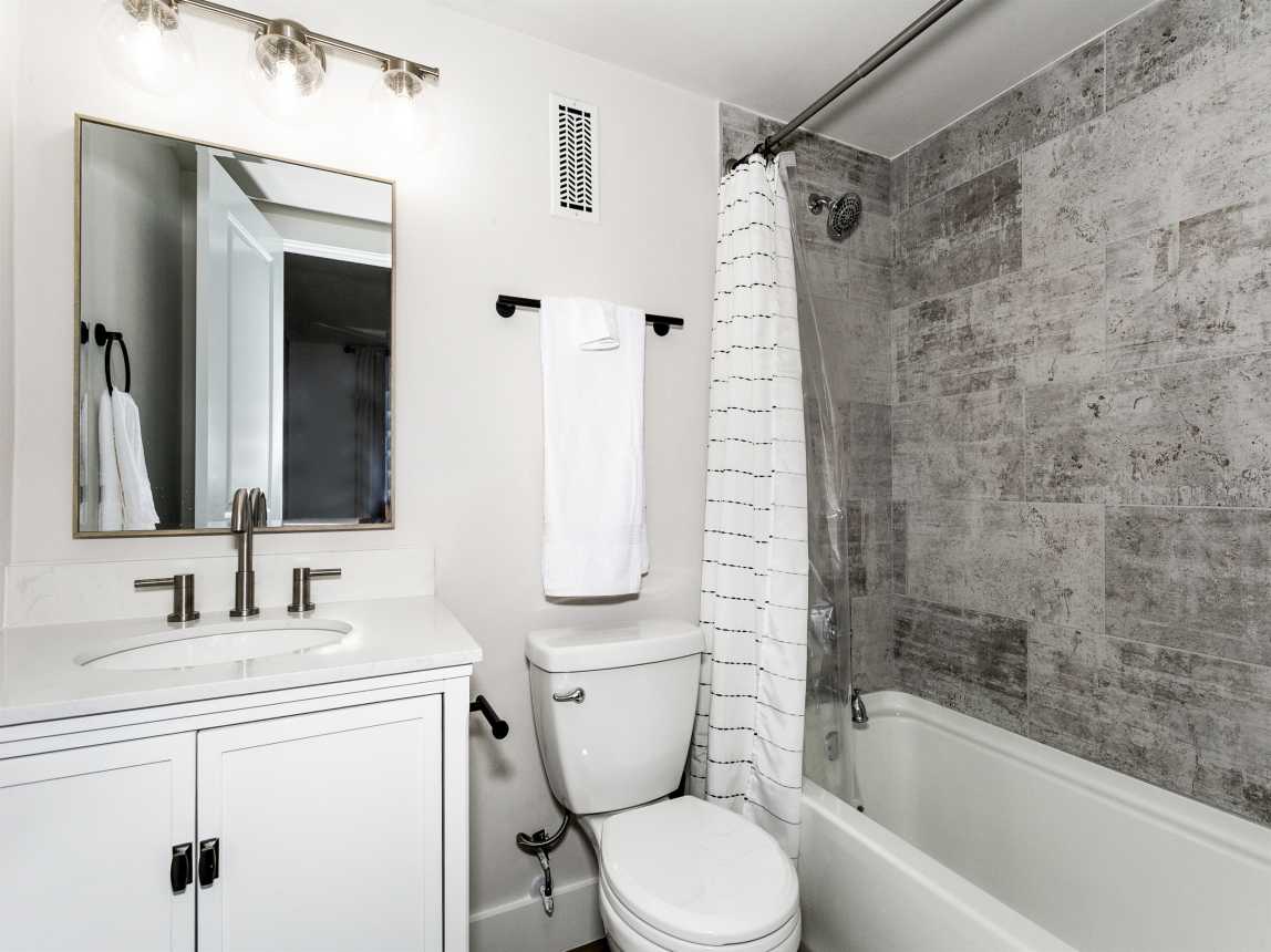 •Queen Bedroom: Dual-access shower/tub, hairdryer, clothing racks, queen bed, and twin bunk beds—designed for flexibility and comfort.