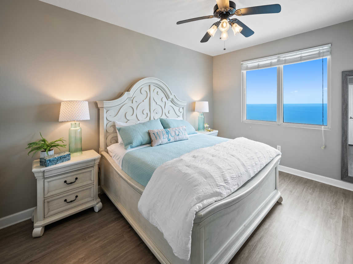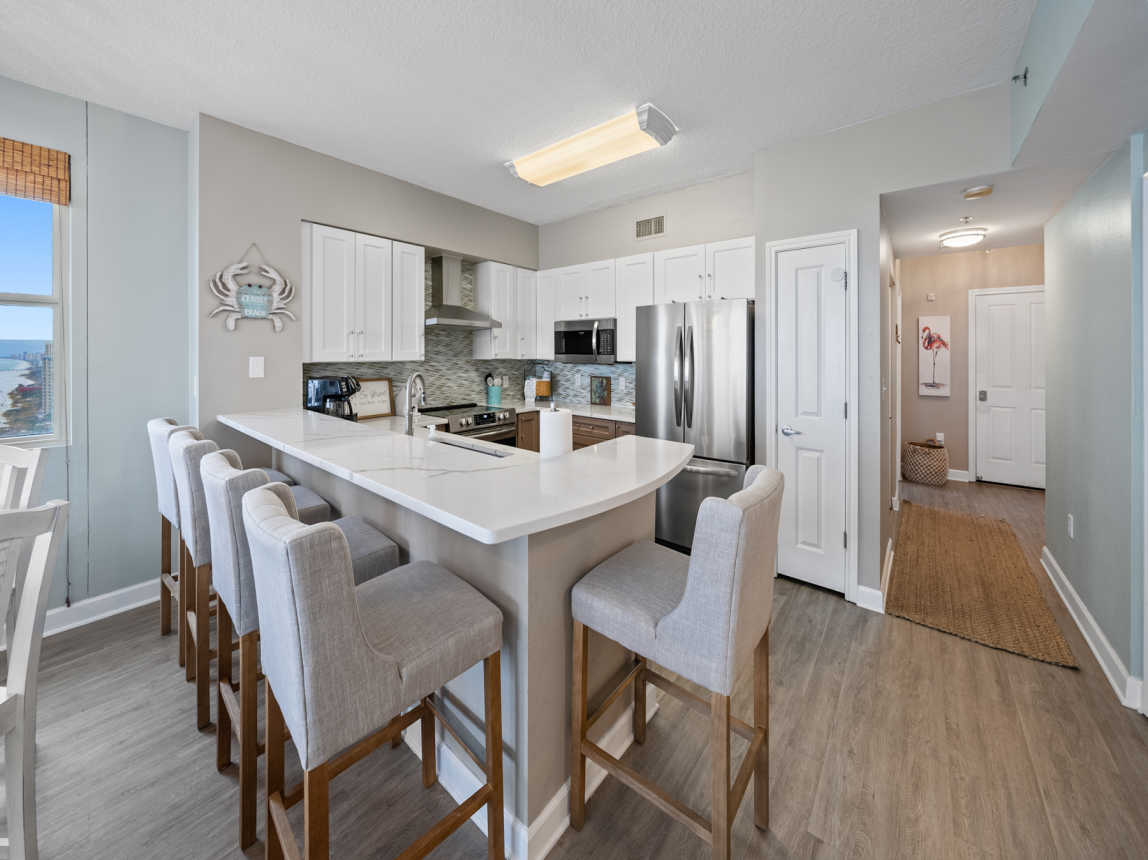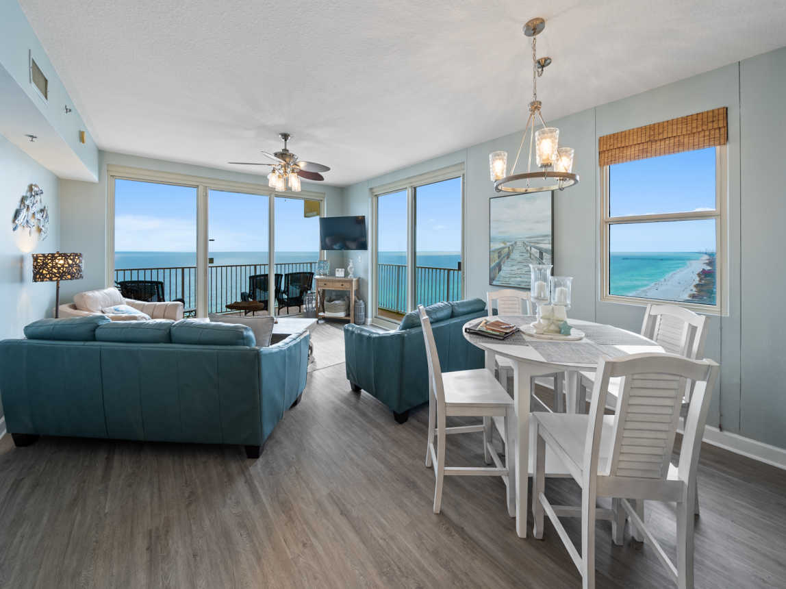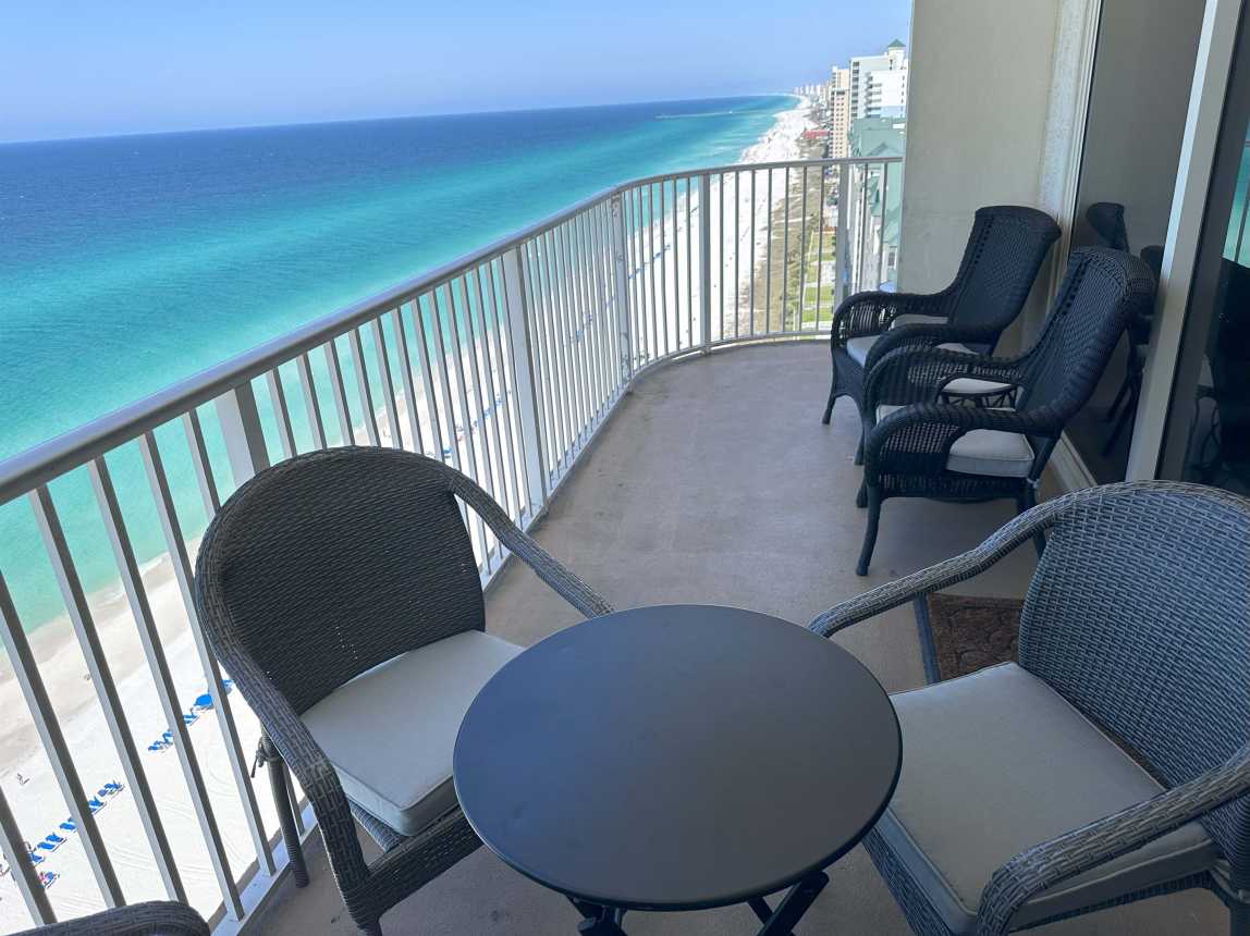Welcome to our corner of the world and what a view it is; get ready to kick back and enjoy glorious sunsets from our luxury condominium with a south and west exposure wrap around balcony at the Shores of Panama. Twenty floors above sea level is the perfect escape to the peaceful sound of the waves crashing below and exuberant beach sounds. As an outer corner unit, it's a QUIETER escape from the day to day grind, but provides quick access to the action if you want it.