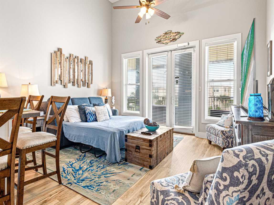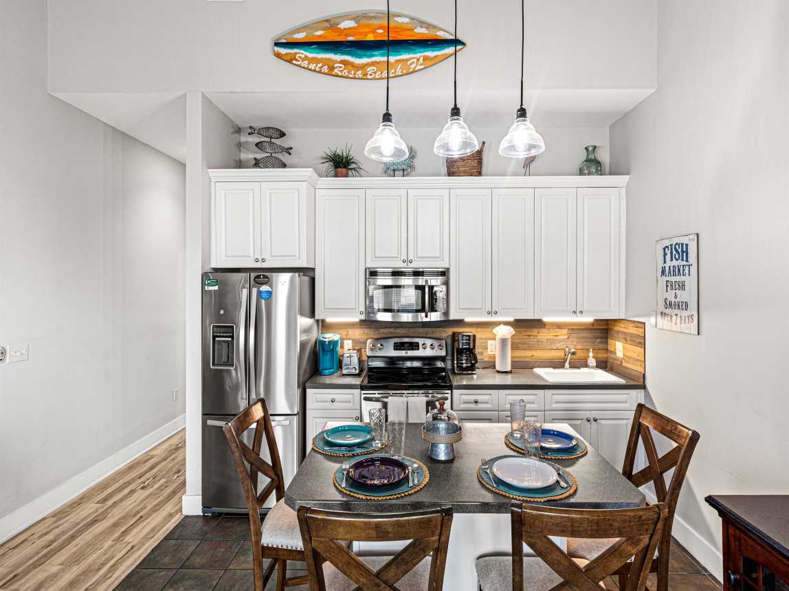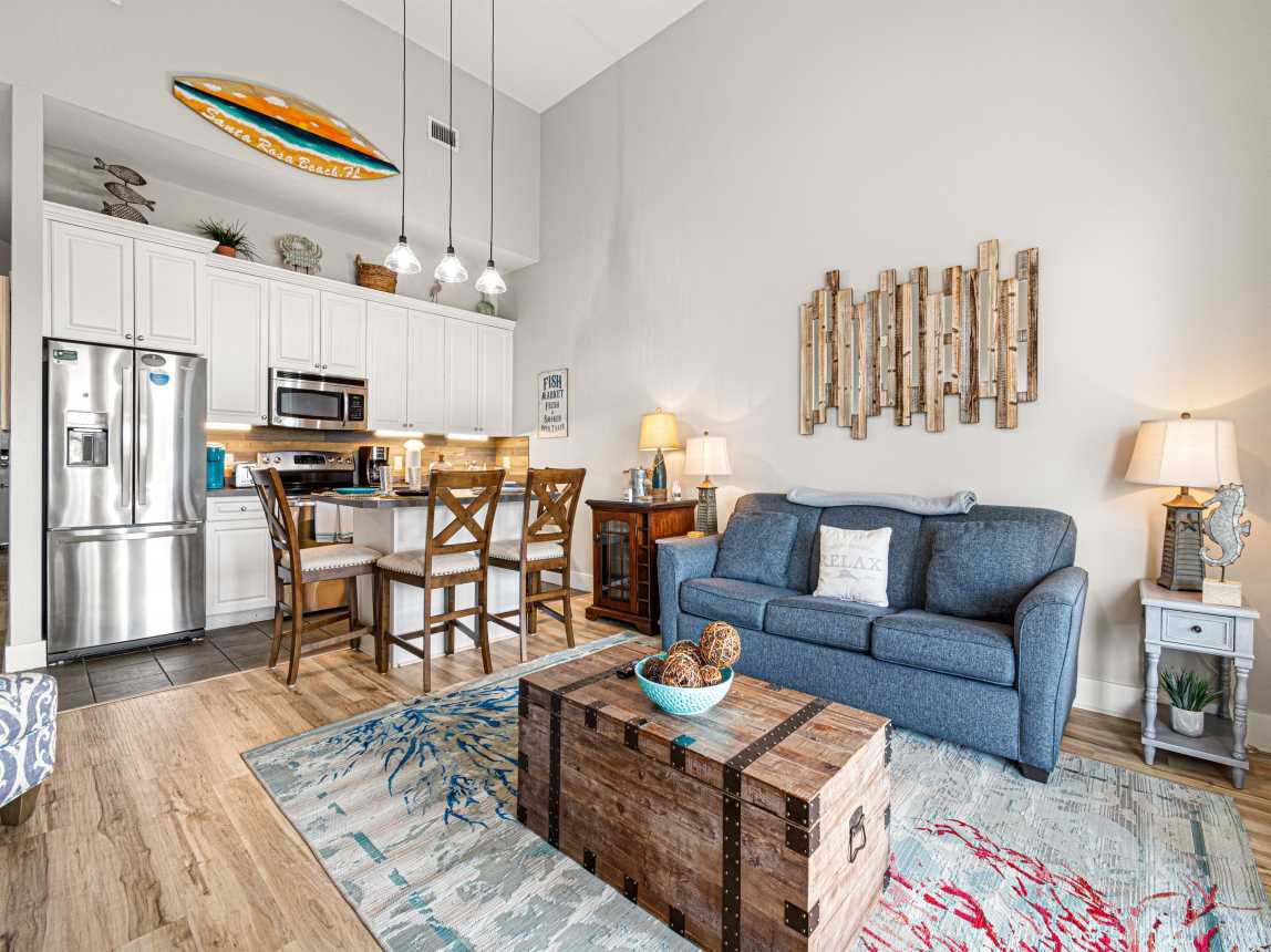 Gorgeous condo on 30A situated directly across from the Gulf of Mexico in Santa Rosa Beach. This is a corner unit located on the 3rd floor (top floor - with elevator access) above Retail and Restaurants and within walking distance to almost anything you might need. Enjoy our amazing patio (my favorite part) with fantastic view of the Gulf. 3 pools (2 are heated), shuffleboard, cornhole, and a walking trail are all available in the complex.