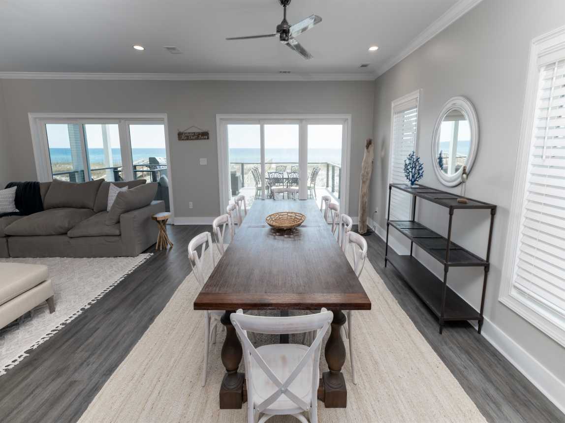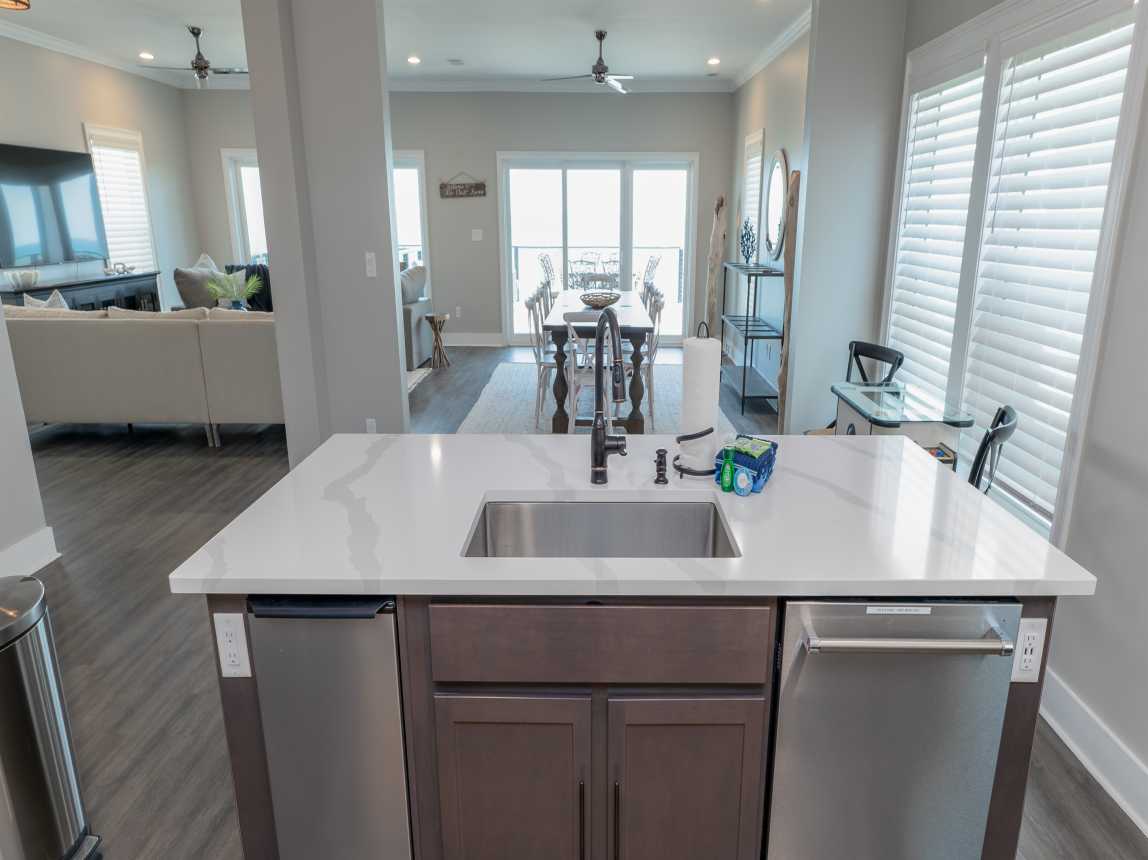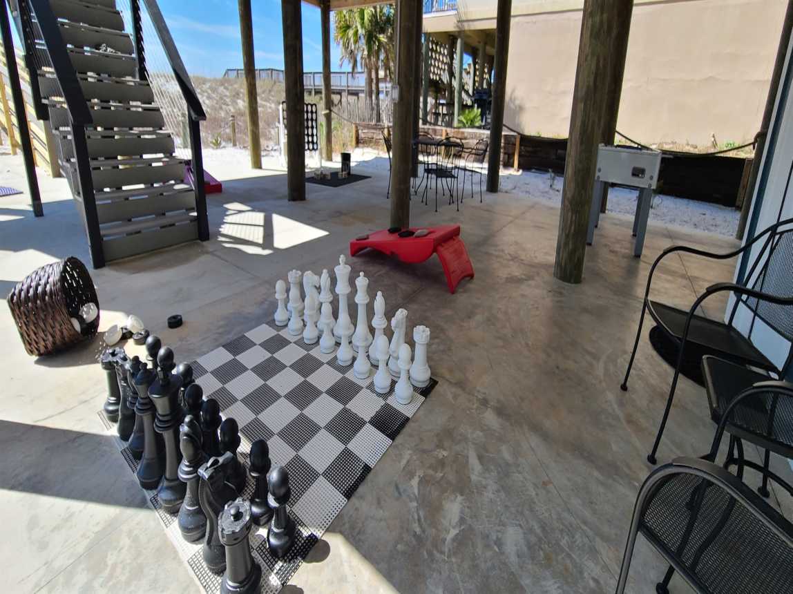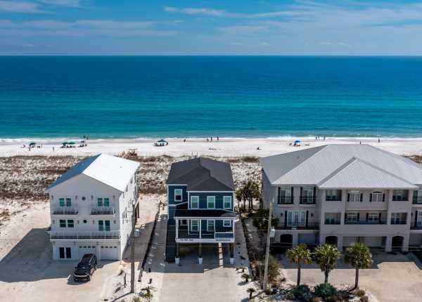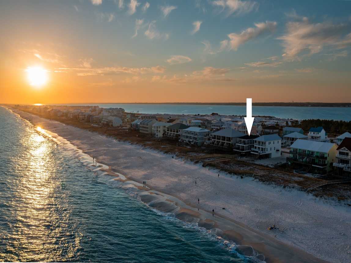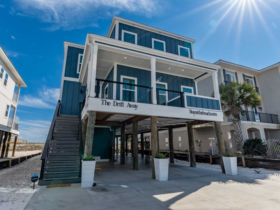 Stay At The Beach proudly presents The Drift Away Beach House... Enjoy unending views & a private walkover right onto the white sand and turquoise water. This 3,000+sq ft beach house has FIVE King Beds, an elevator & parking for up to 4 vehicles. Prepare meals in fully-equipped gourmet kitchen, which includes an ice-maker, Keurig and a regular drip coffee maker. Also provided is a gas grill, 10 beach chairs, Cable TV, Wi-Fi, and an 80's Arcade. Outside you'll find corn hole, foosball, a pool table, and outdoor chess/checkers/connect four games. The primary bdrm is comparable to a hotel suite, having TWO king beds, a private view of the beach, a private deck, 2 TV, and its own bathroom. The elevator opens directly into this suite- making...
