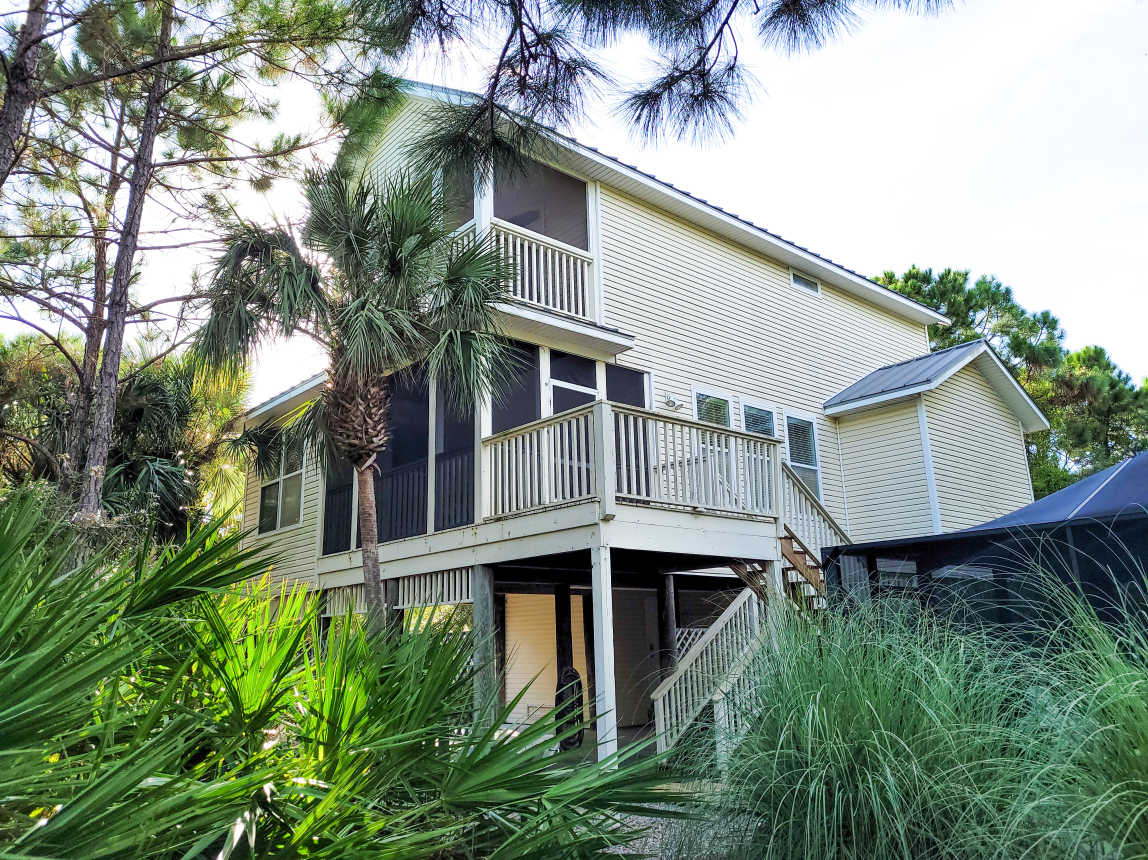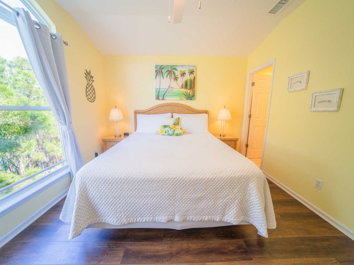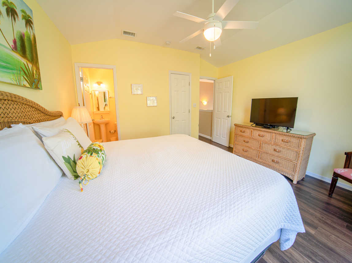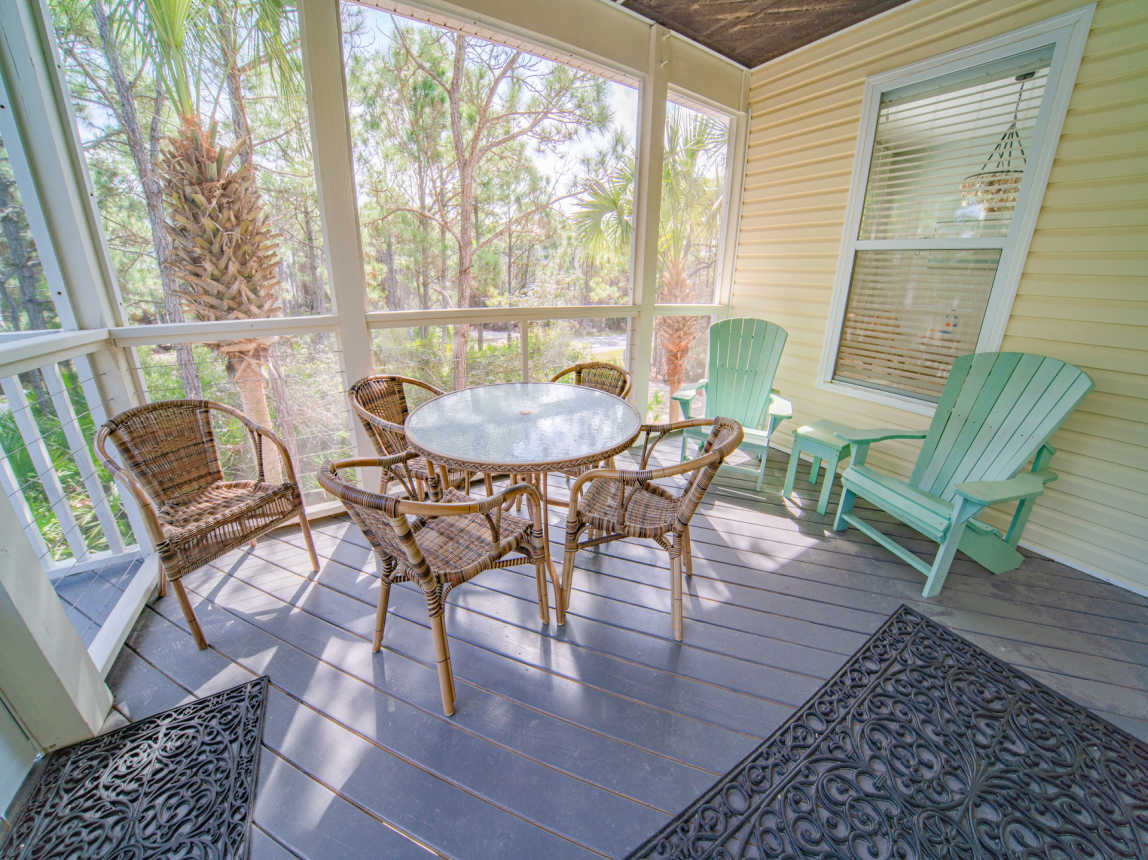 A quick 3-4 minute walk to the beach, this home is surrounded by natural vegetation and located in a quiet neighborhood within the prestigious St. George Plantation gated community. The 1st floor living room offers a large, flat screen TV and DVD player, and a Queen sleeper sofa for additional sleeping for up to 2 guests. This relaxed space opens onto a shade...