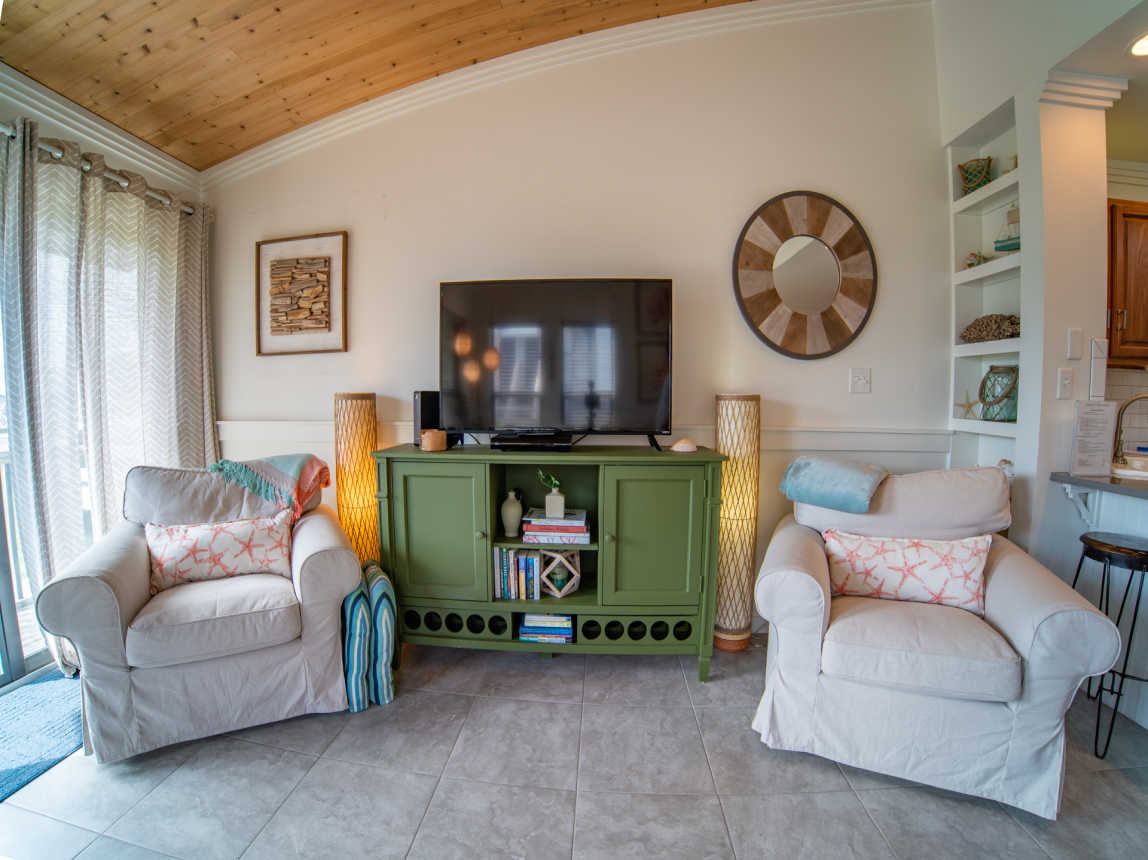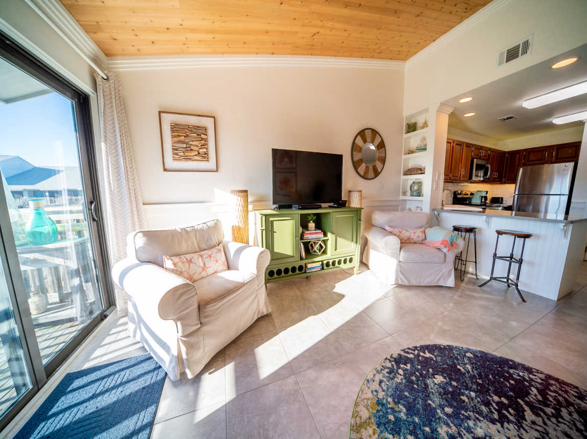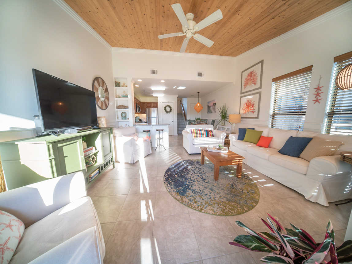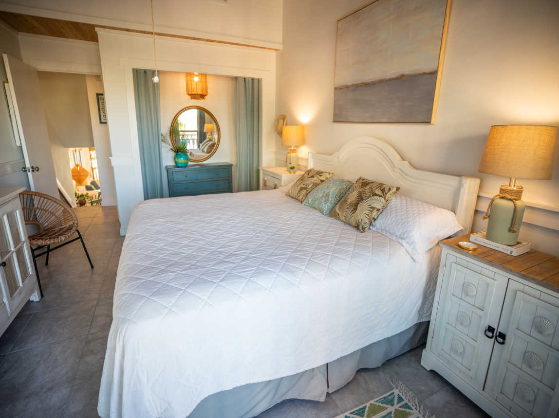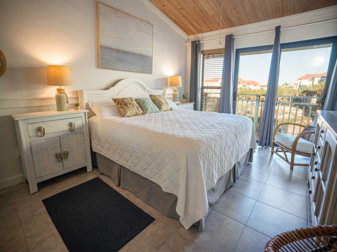 This beautifully and thoughtfully decorated townhome is the end-unit of the "J" building in 300 Ocean Mile, closest to the beach! Enter upstairs where you will find the tiled bedroom with King bed, flat screen TV and closet. The bedroom b...