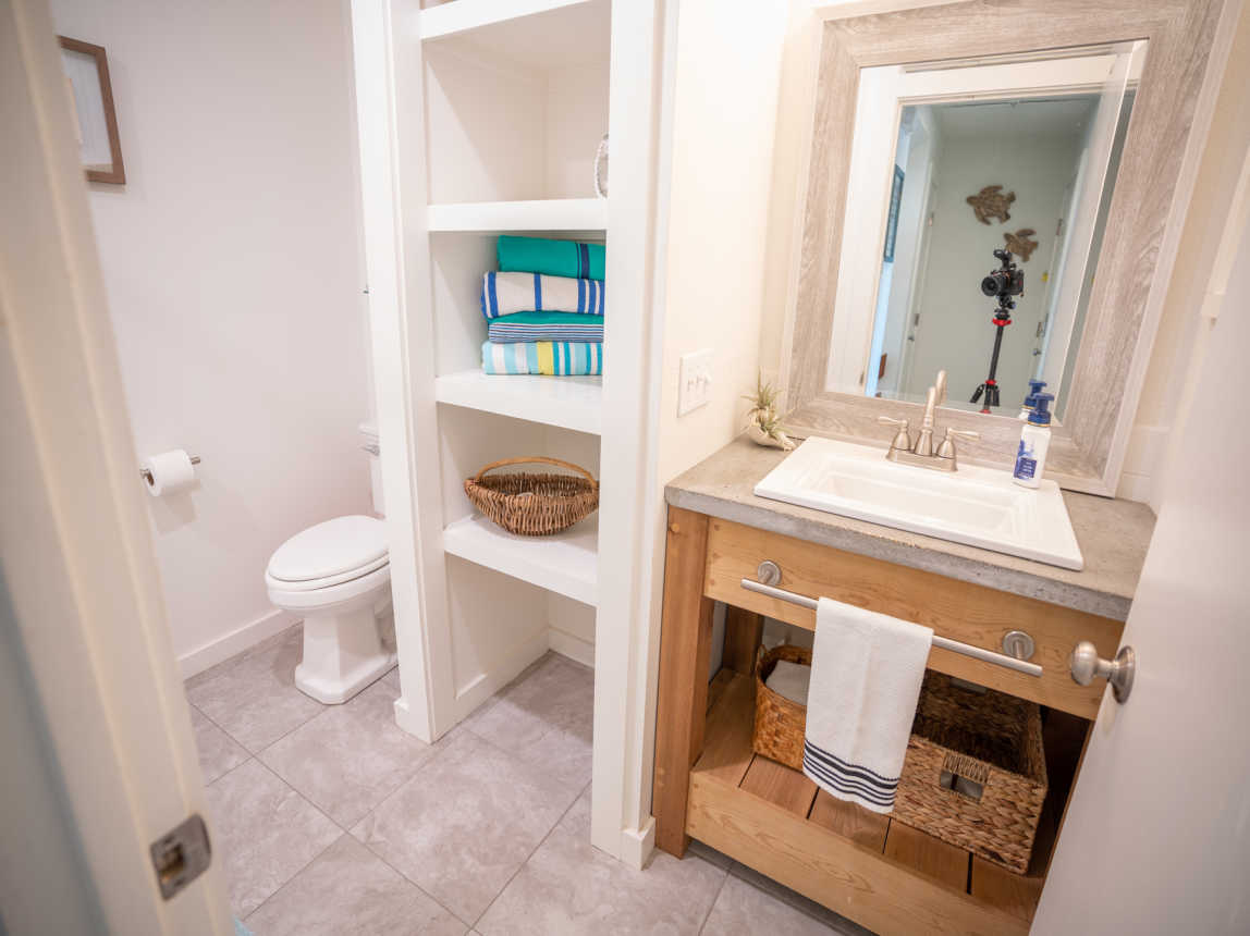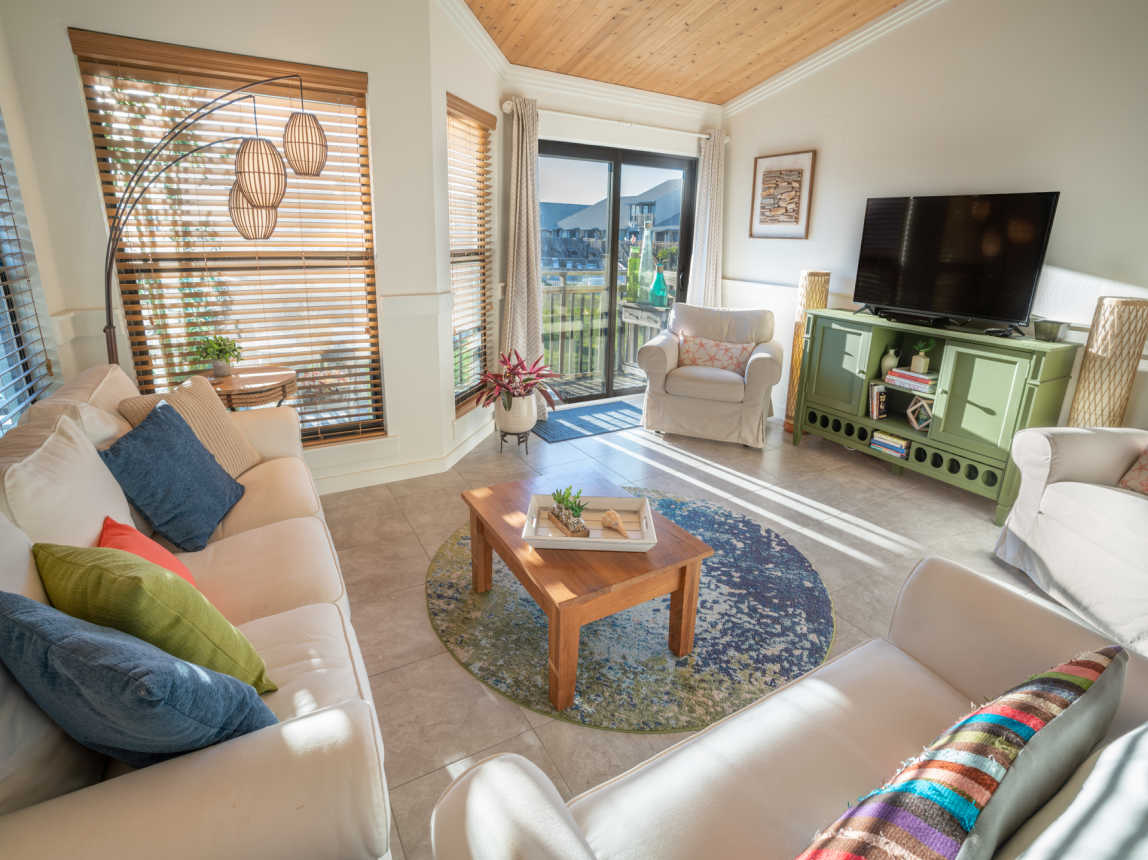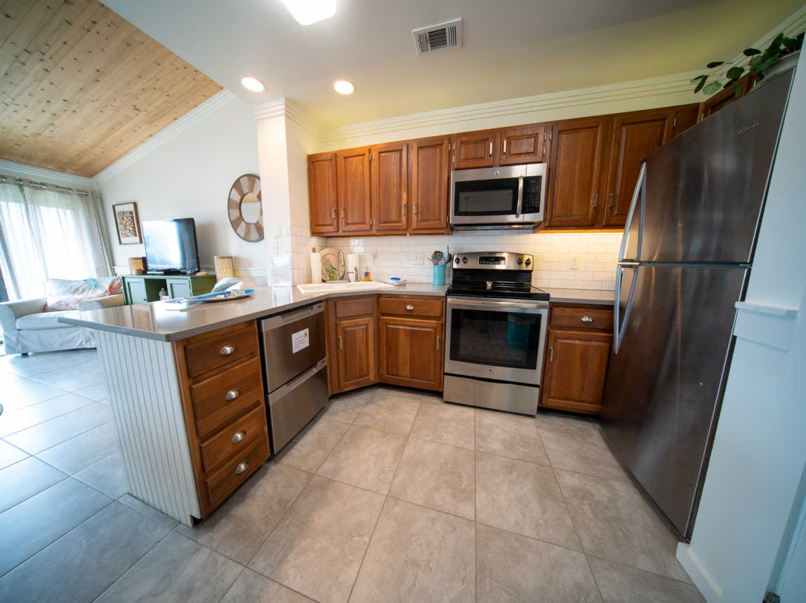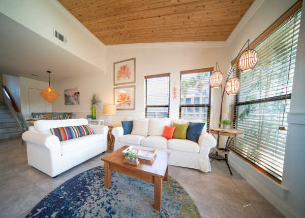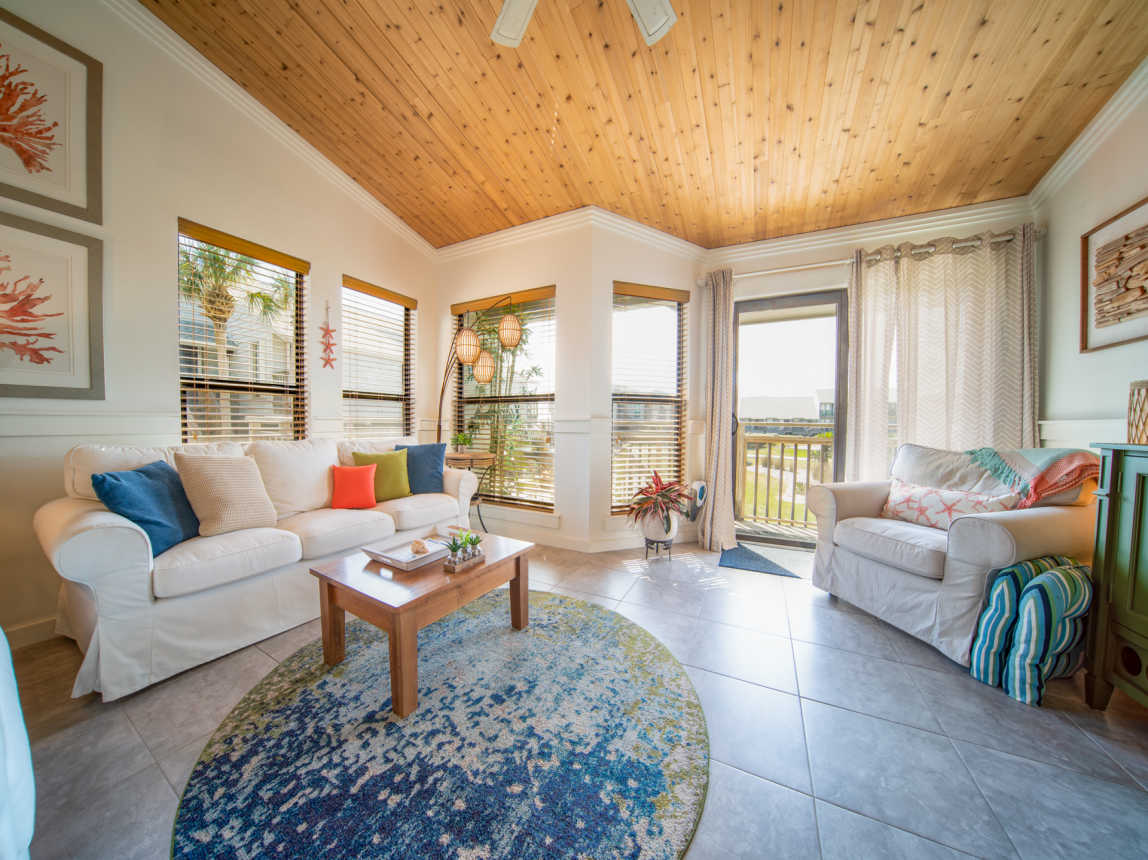 This beautifully and thoughtfully decorated townhome is the end-unit of the "J" building in 300 Ocean Mile, closest to the beach! Enter upstairs where you will find the tiled bedroom with King bed, flat screen TV and closet. The bedroom b...