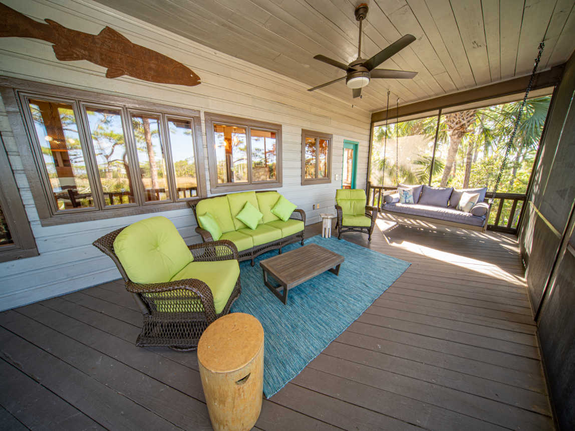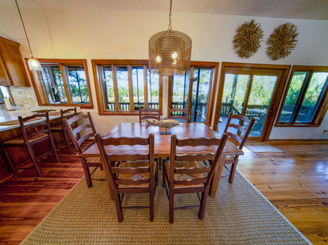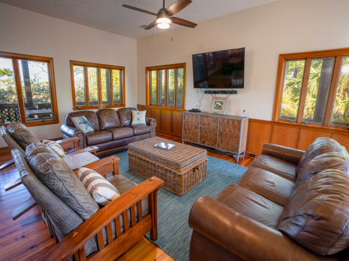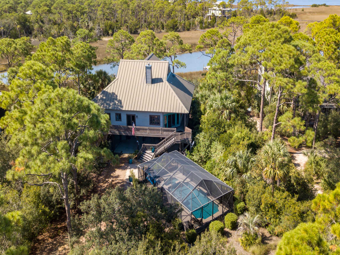 Located canal-front and just a 6-minute walk or 2-minute bicycle ride to the Gulf beach, this Cypress home is found within the prestigious St. George Plantation community and is surrounded by pines and palmettos for the ultimate in privacy and relaxation. Elegantly rustic, Saltwater Charlie’s has a casual and relaxed vibe with an upscale feel.