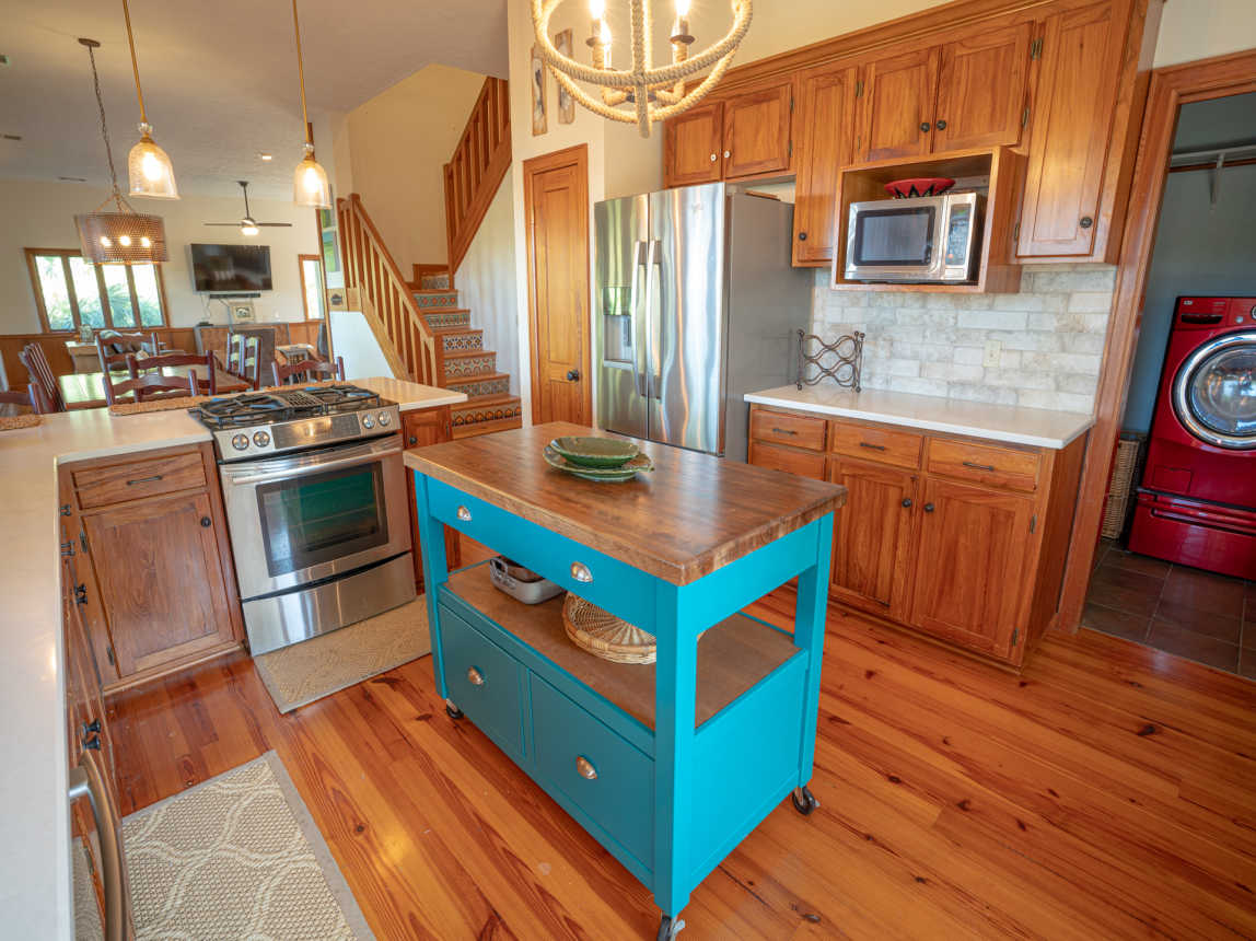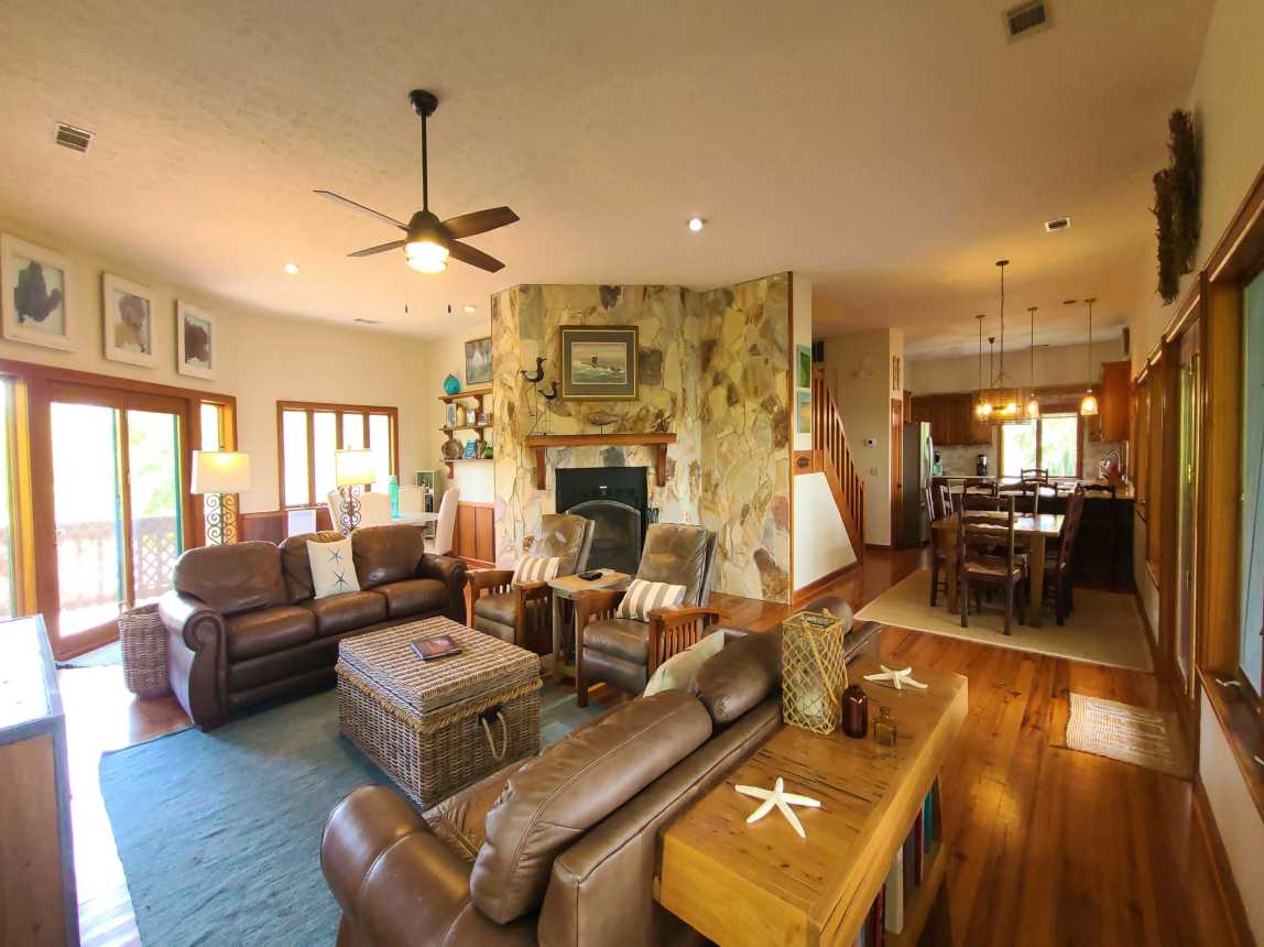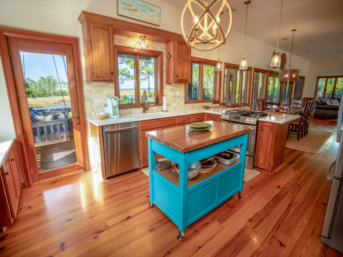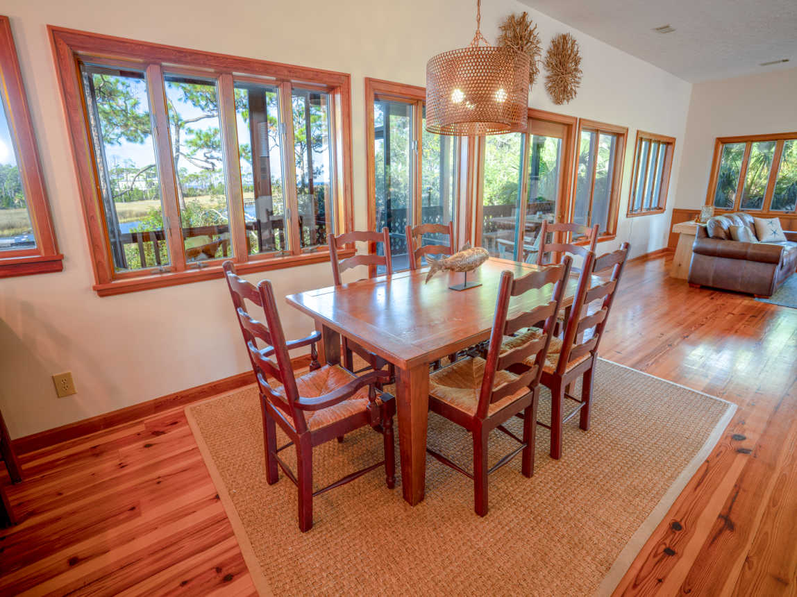 Located canal-front and just a 6-minute walk or 2-minute bicycle ride to the Gulf beach, this Cypress home is found within the prestigious St. George Plantation community and is surrounded by pines and palmettos for the ultimate in privacy and relaxation. Elegantly rustic, Saltwater Charlie’s has a casual and relaxed vibe with an upscale feel.