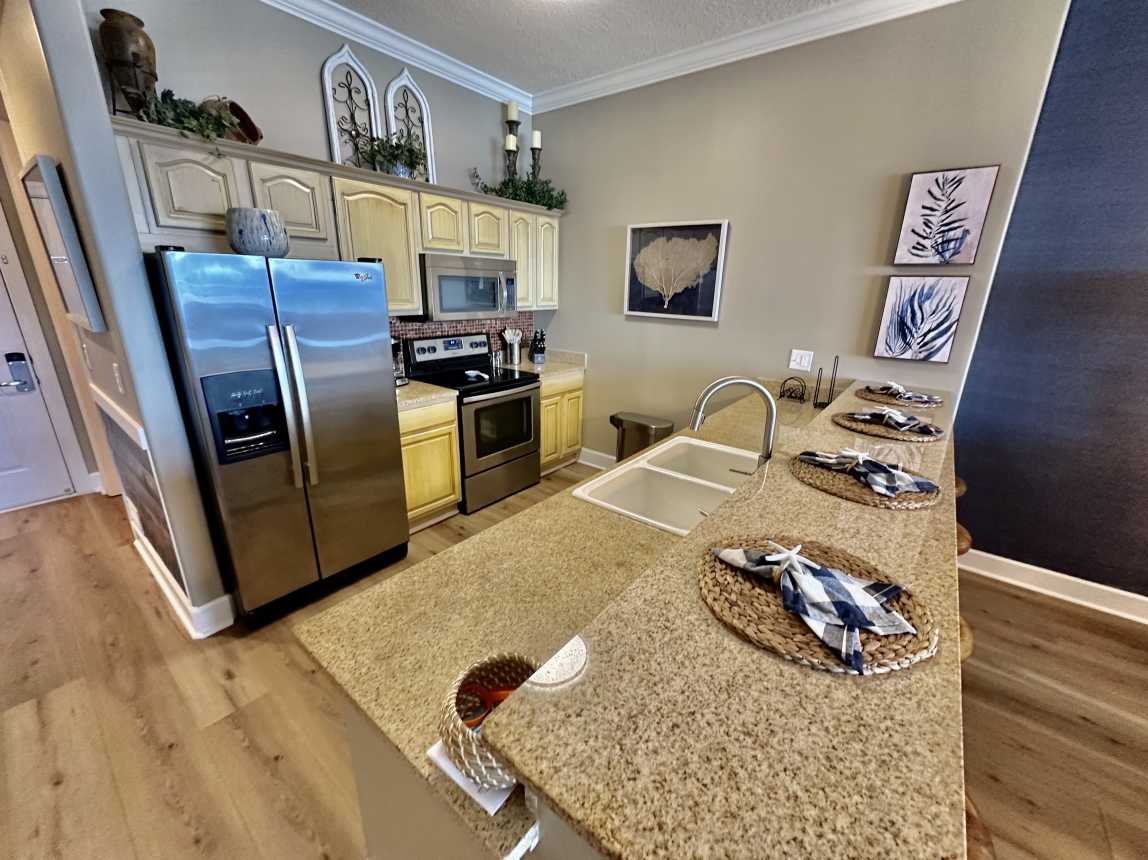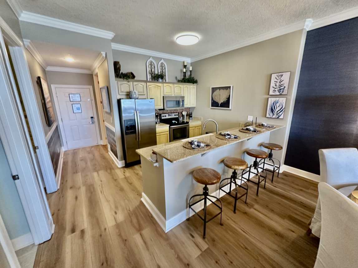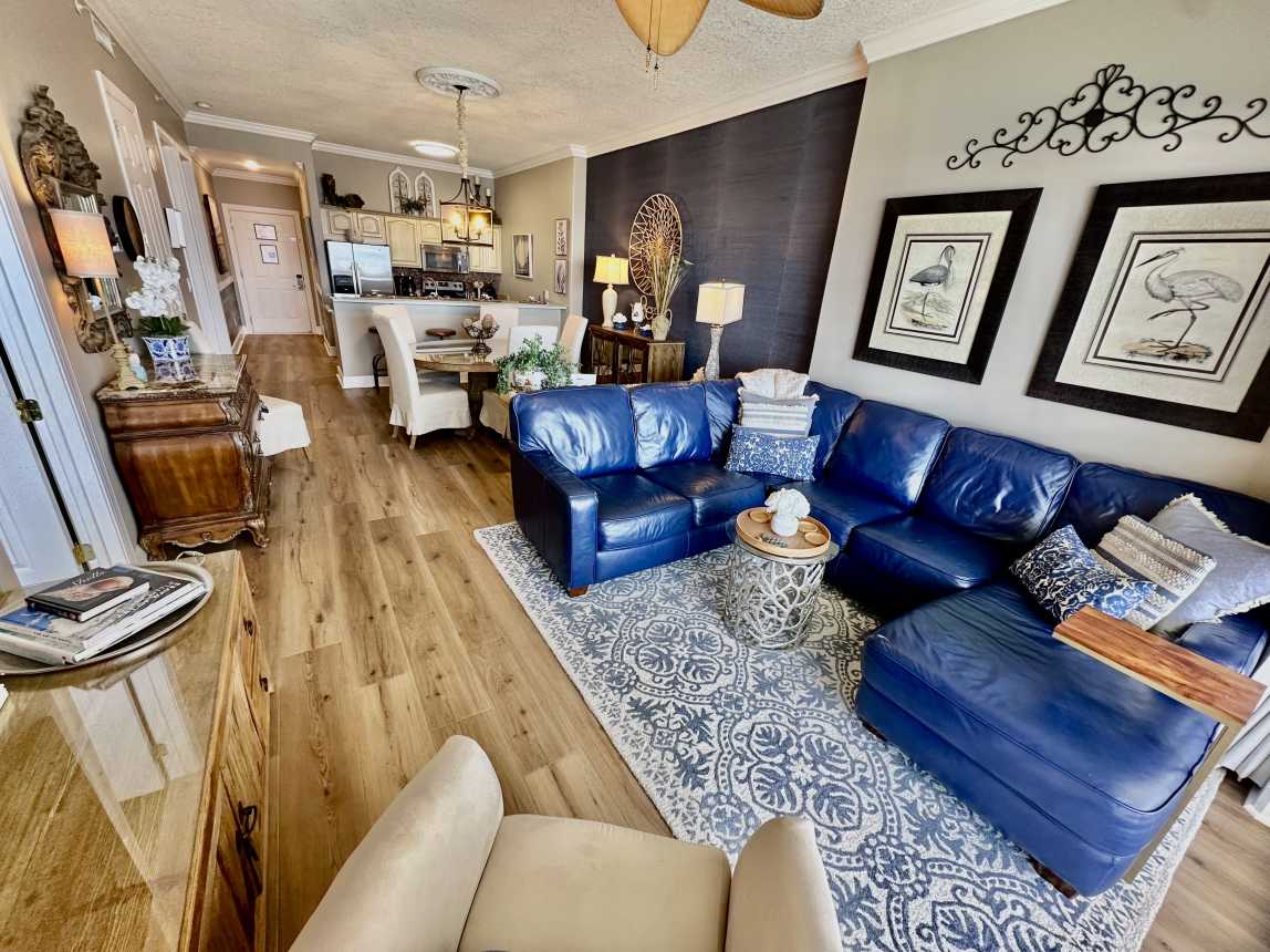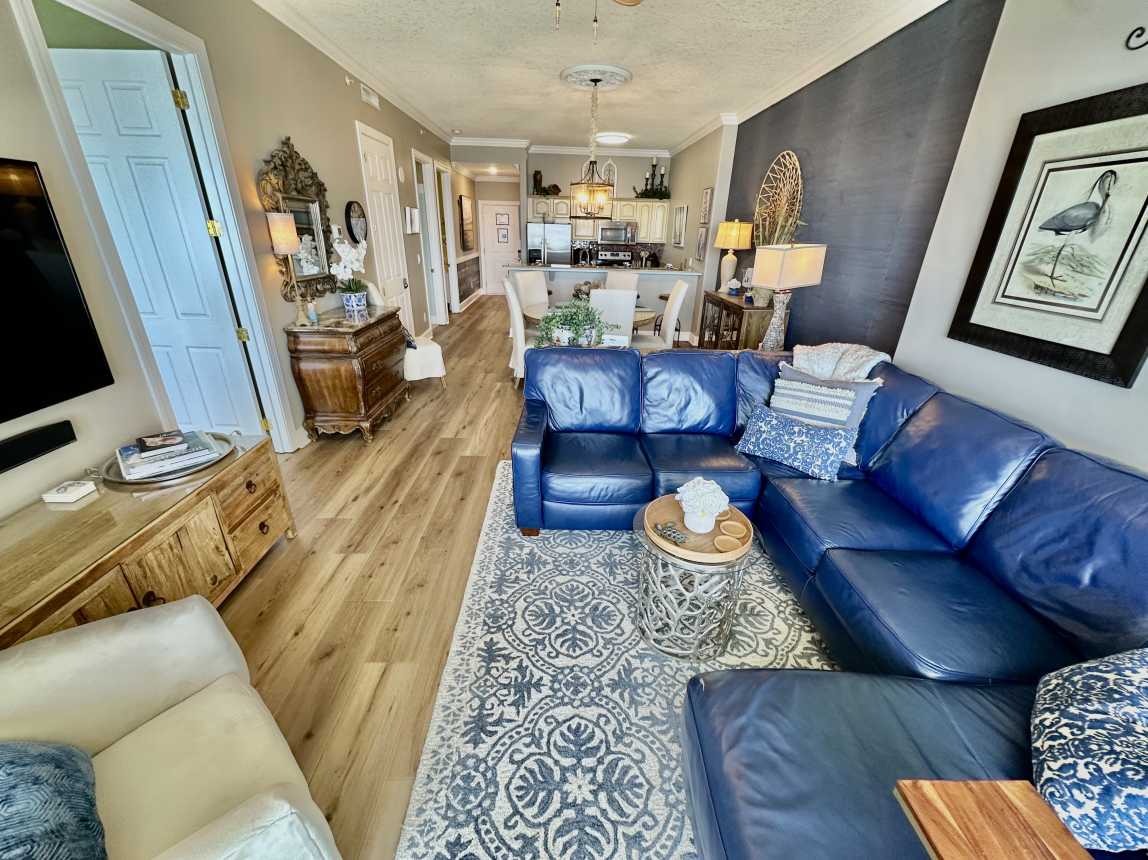 Book this highly upgraded, 2 bedroom, 2 bath, beachfront condo featuring an oversized balcony, beautiful wood flooring, walk-in shower, and more! From the moment you walk-in, this upscale condo will awe you with its coastal cottage design.