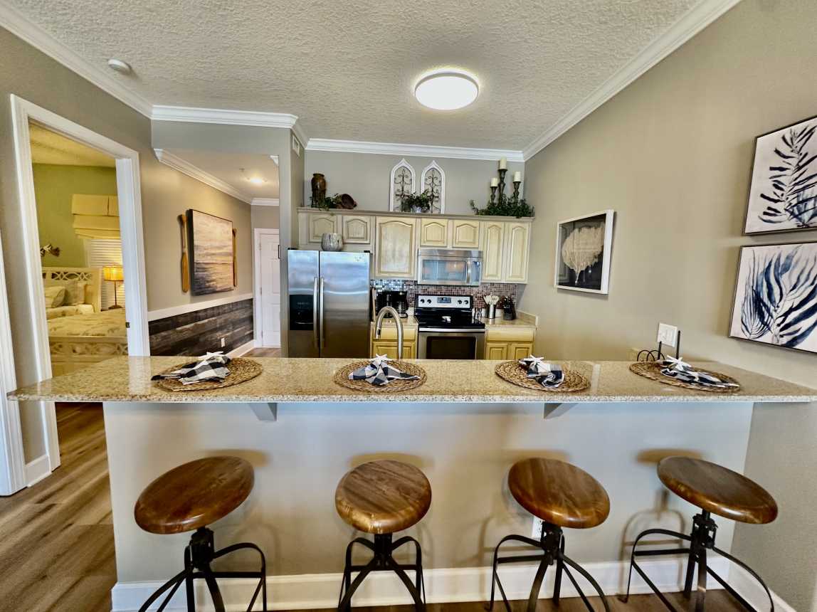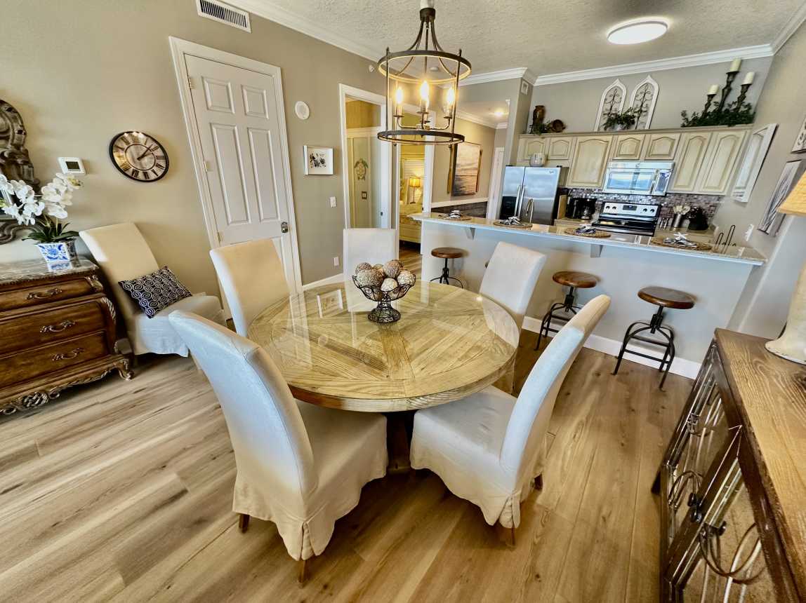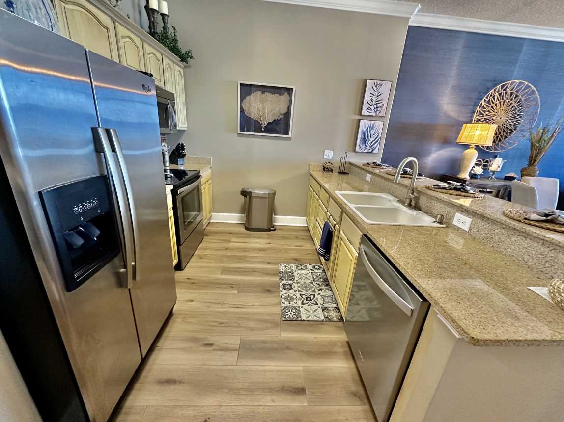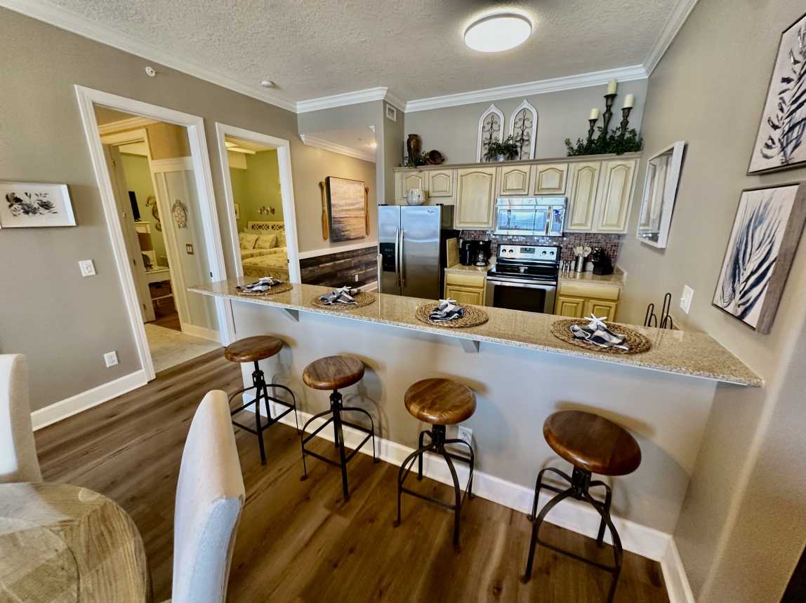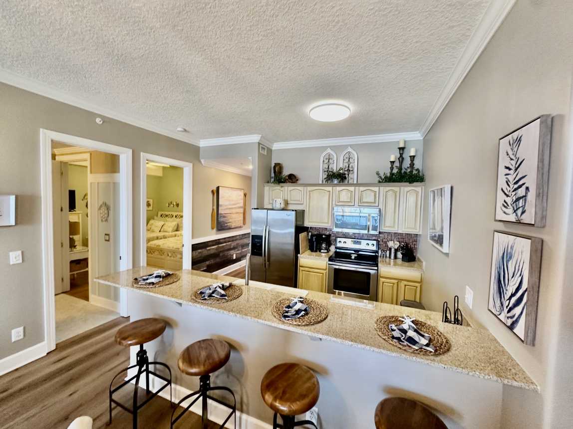 Book this highly upgraded, 2 bedroom, 2 bath, beachfront condo featuring an oversized balcony, beautiful wood flooring, walk-in shower, and more! From the moment you walk-in, this upscale condo will awe you with its coastal cottage design.