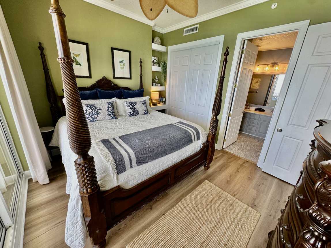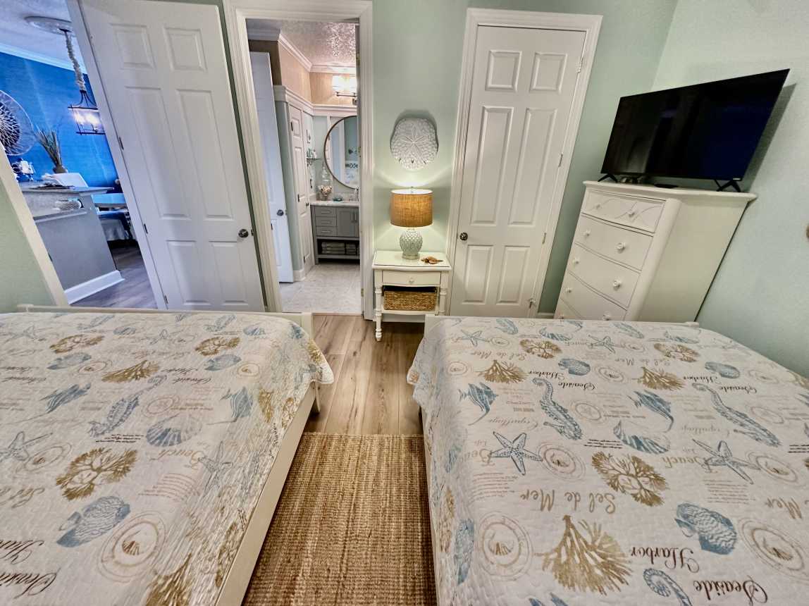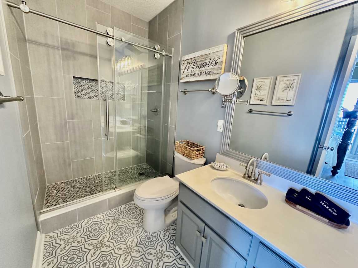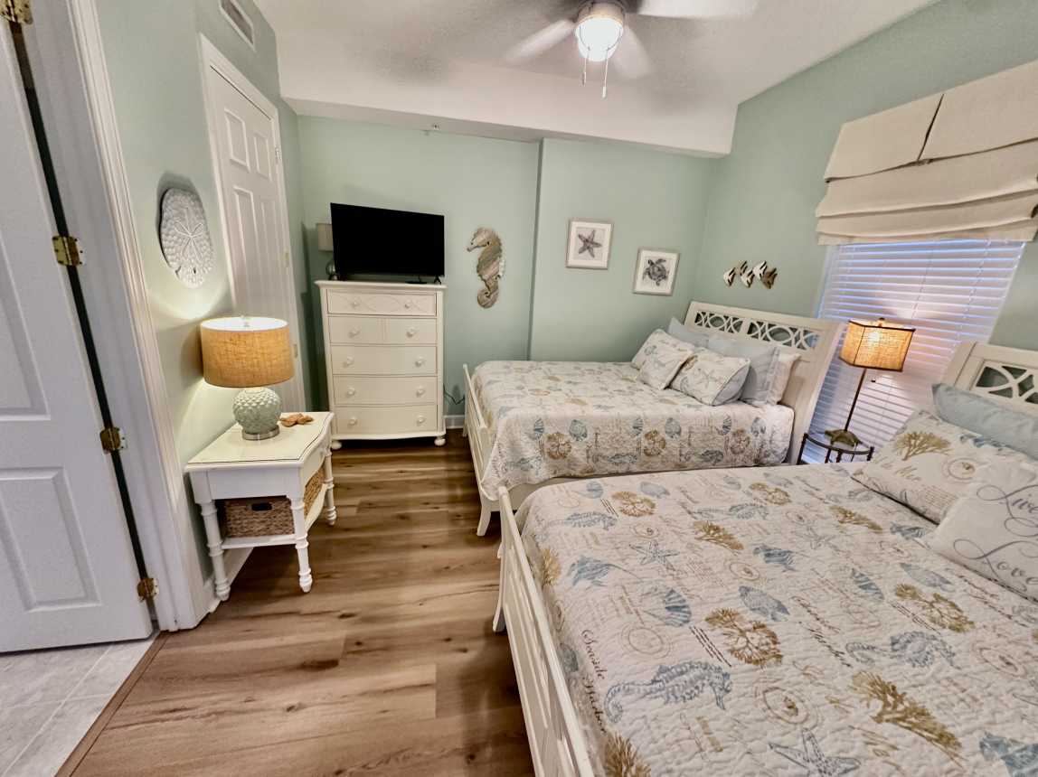 Book this highly upgraded, 2 bedroom, 2 bath, beachfront condo featuring an oversized balcony, beautiful wood flooring, walk-in shower, and more! From the moment you walk-in, this upscale condo will awe you with its coastal cottage design.