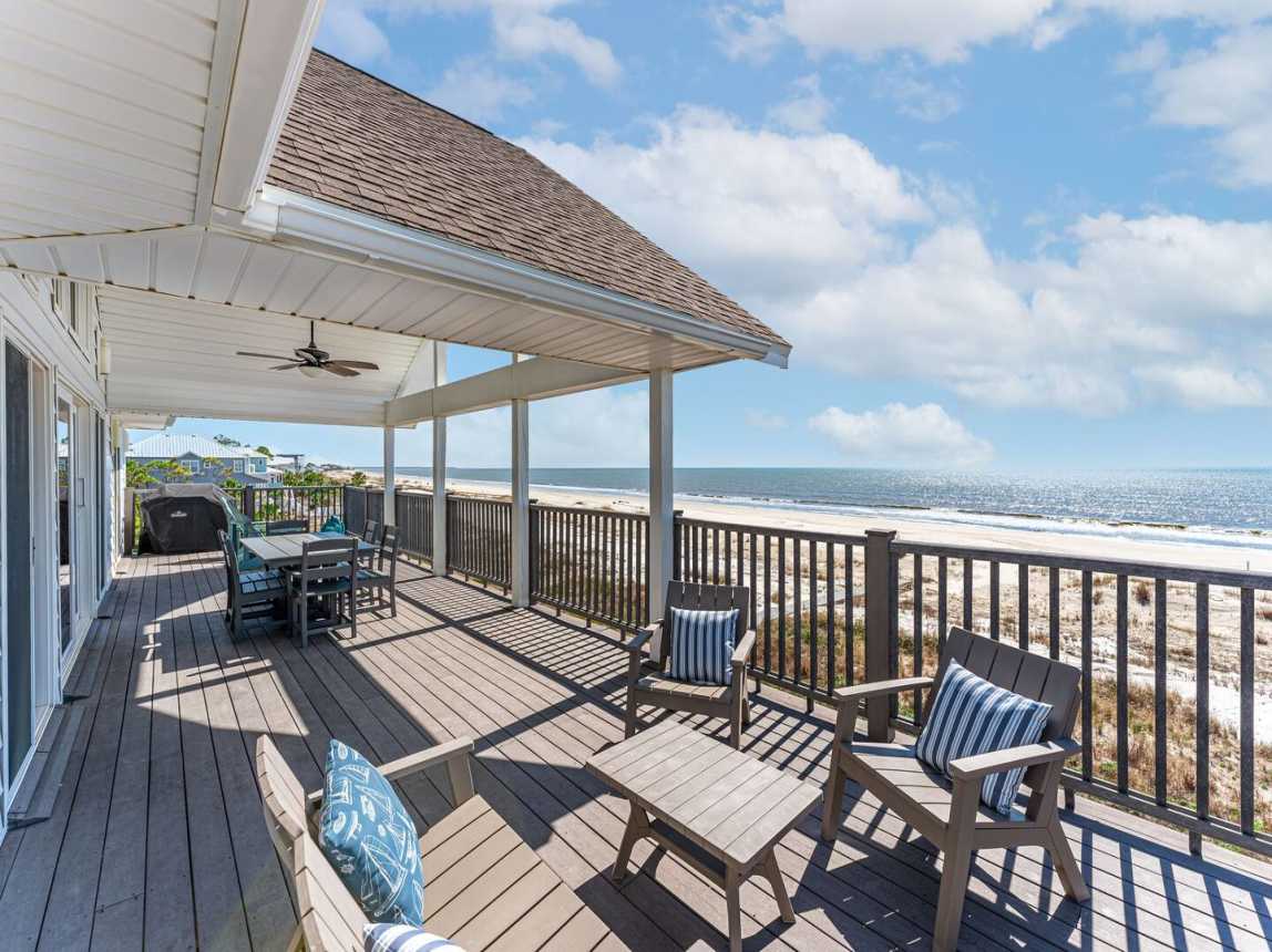 Situated on an acre of Gulf-front property, guests can enjoy stunning panoramic views of the ocean from the large windows and spacious balconies. The home's private boardwalk leads directly to the pristine white sand beaches and sparkling waves of Sout...