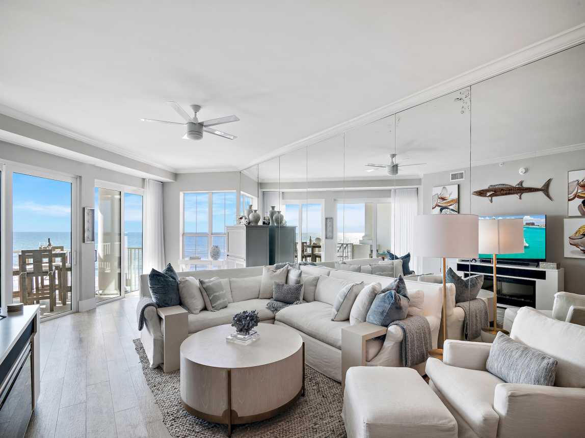 If you enjoy the finer things in life, then you are sure to love this beautiful beachfront condo. Imagine waking up to the sun and beautiful view of the Gulf. Breathtaking views from your balcony, living areas, and the pièce de résistance – the primary suite!
