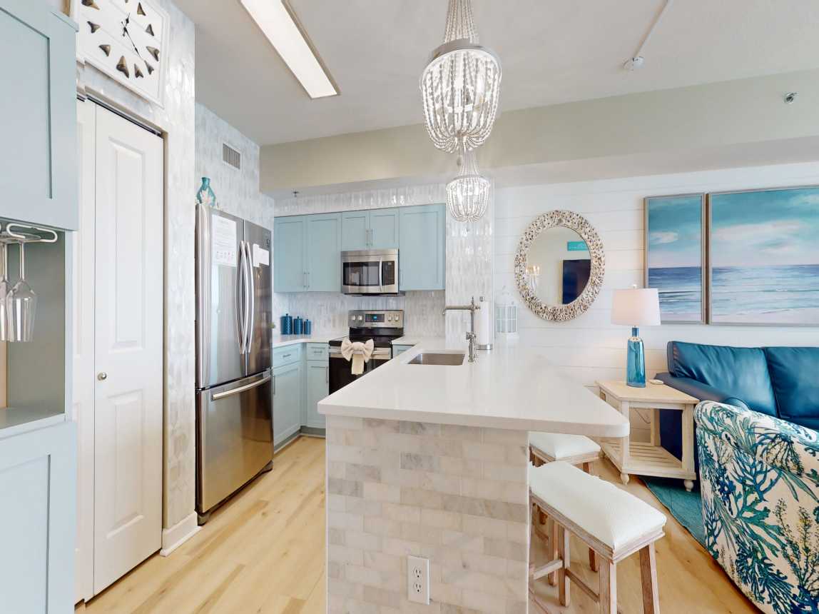 Step inside and be greeted by modern coastal décor and an open-concept living space. The fully equipped kitchen features new appliances and all the utensils you need to prepare meals, while the breakfast bar offers a cozy spot for your morning coffee. Step out onto the private balcony to wa...