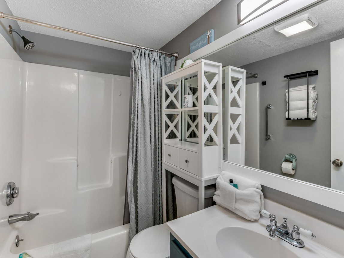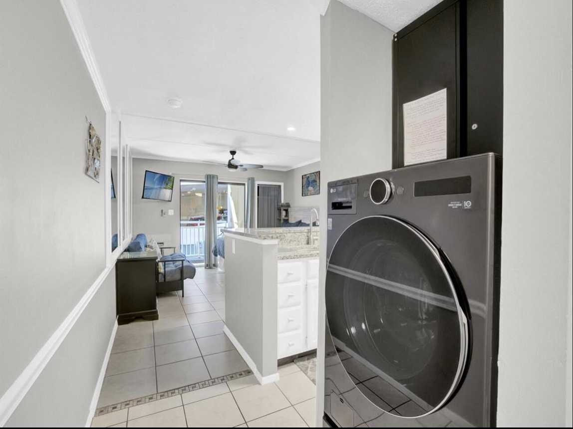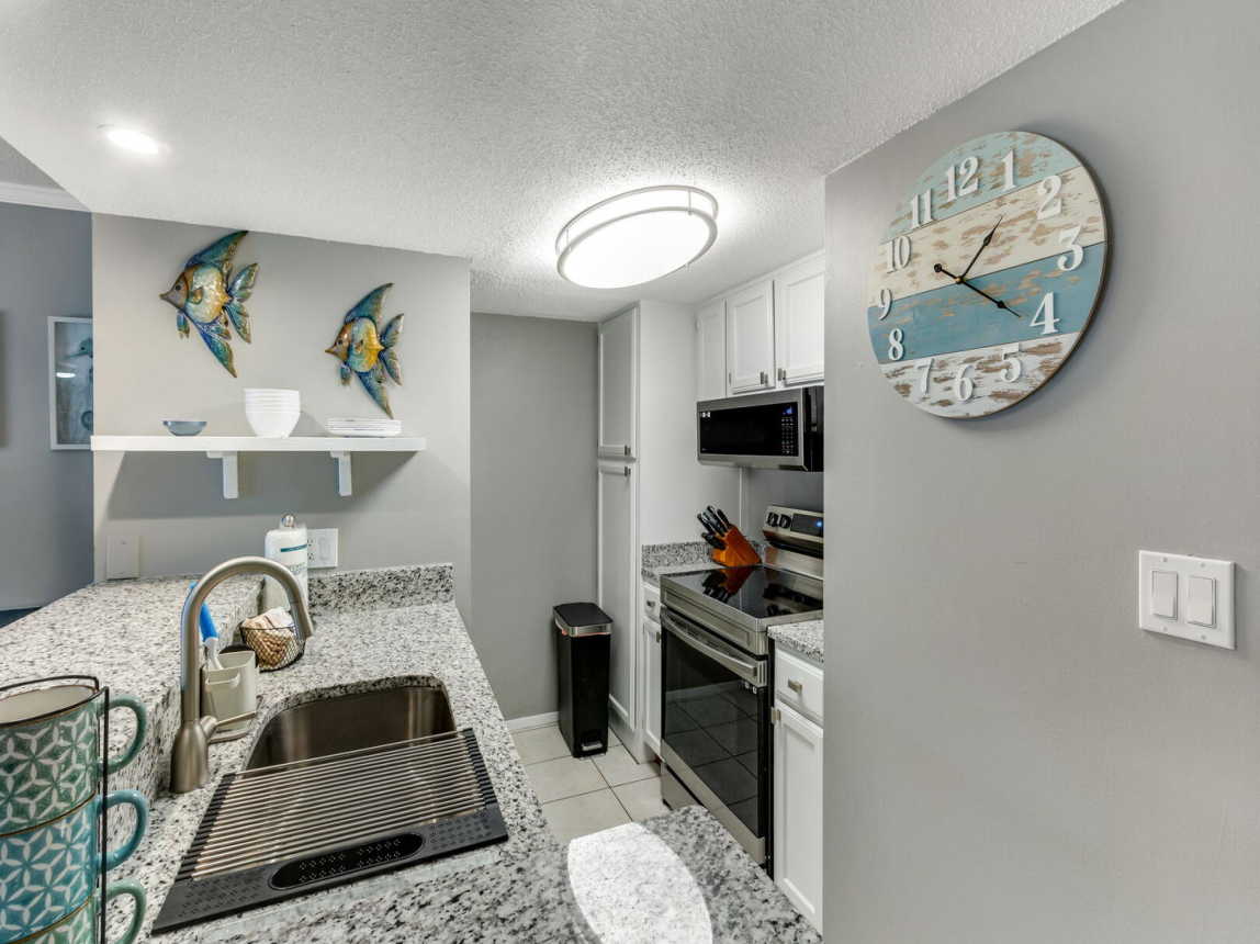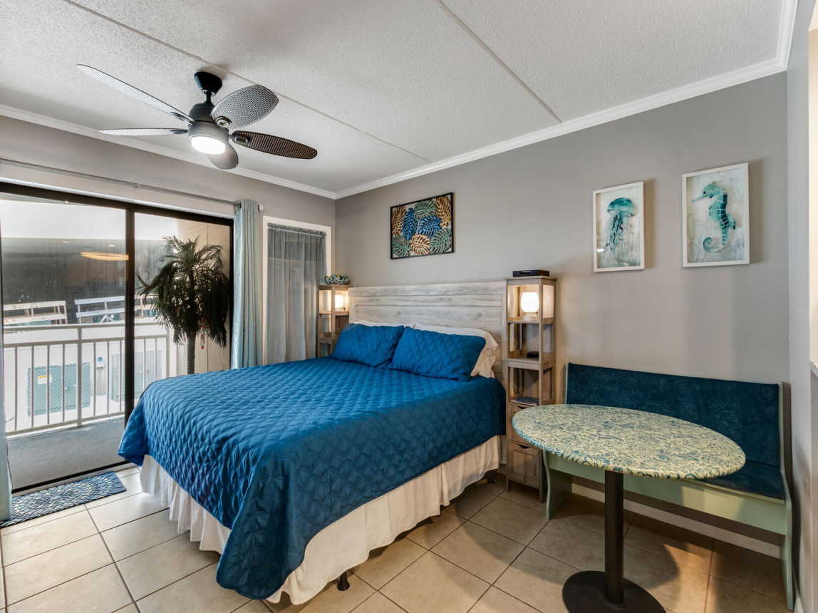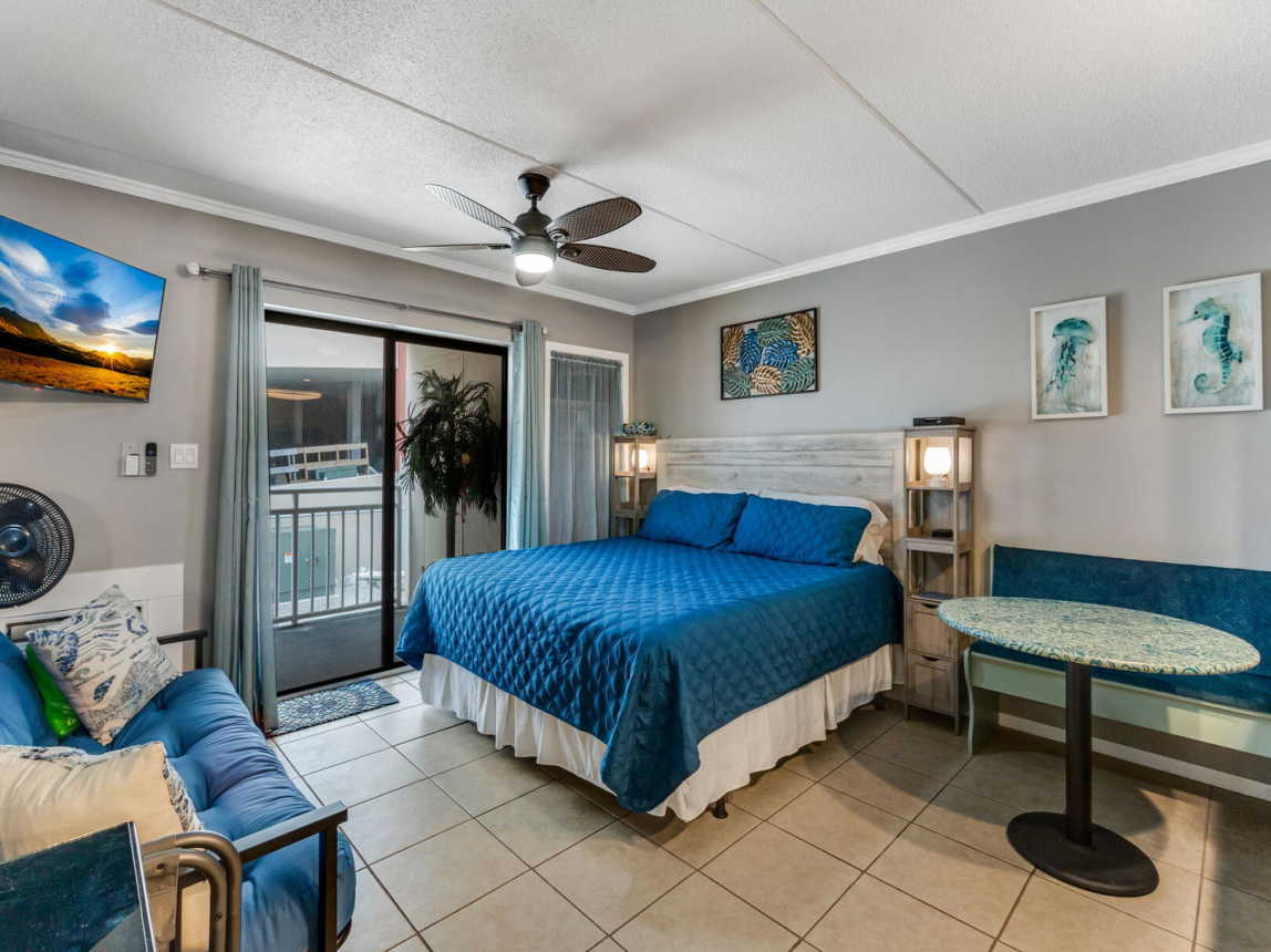 The condo has been updated with granite countertops and tile floors. Inside, you'll find a spacious living area with a King-sized bed, perfect for a peaceful night's sleep after a day of beach adventures. Relax on the Queen-sized sofa sleeper or watch your favorite TV show on the flat-screen TV.