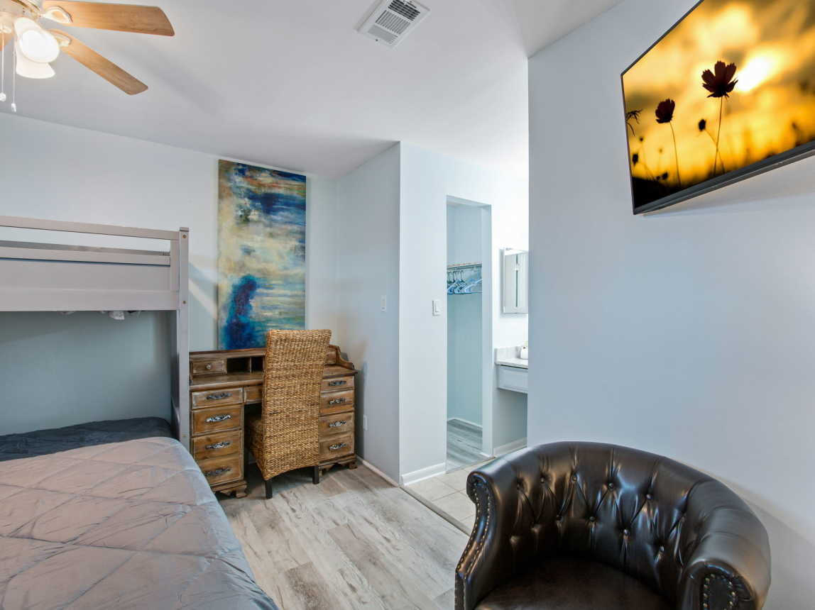 Discover this stunning resort condo with direct beach access, 3 pools and a kids' pool too! This two-level suite accommodates six guests. The main bedroom on the second floor boasts a queen bed along with twin bunk beds and an en-suite bathroom. The sleeper sofa is ideal for kids or one adult. Bask in the sunshine on the pristine sugar white sand beach or swim in the Gulf of Mexico's emerald waters. The full-size kitchen is perfect for whipping up a quick sandwich before returning to the great outdoors, perhaps for a refreshing dip in one of Sugar Beach's 3 pools. One pool is seasonally heated. Sugar Beach 368's prime location near dining and shopping venues makes it an excellent choice for experiencing all that Orange Beach has to offer. E...
