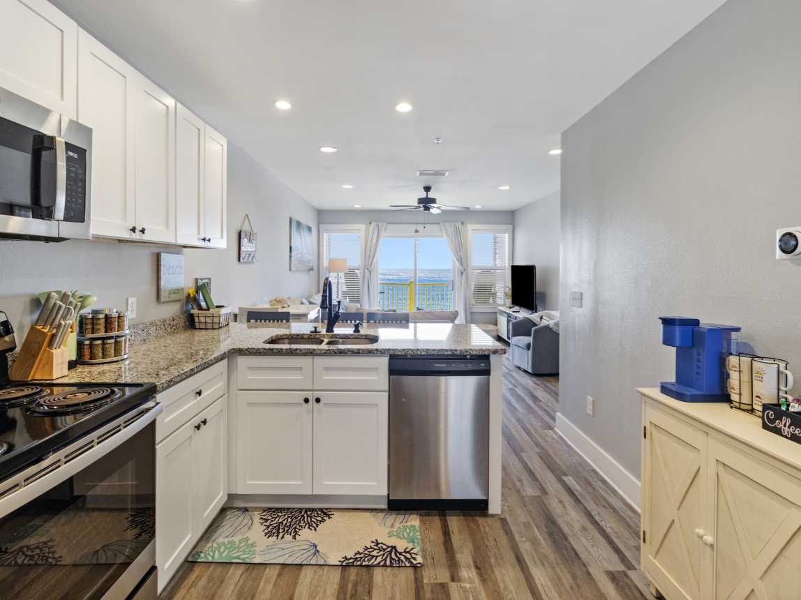 You will truly enjoy the captivating Gulf views from one of two oceanfront balconies, while enjoying your morning coffee and feeling the ocean breeze. We sleep four comfortably with extra sleeping space on the sleeper sofa for two additional guests (for a total of six). We have two bedrooms and two and a half bathrooms, which consist of a King bed in the master bedroom, a Full bed in the second bedroom (and a twin trundle bed that can be taken out f...
