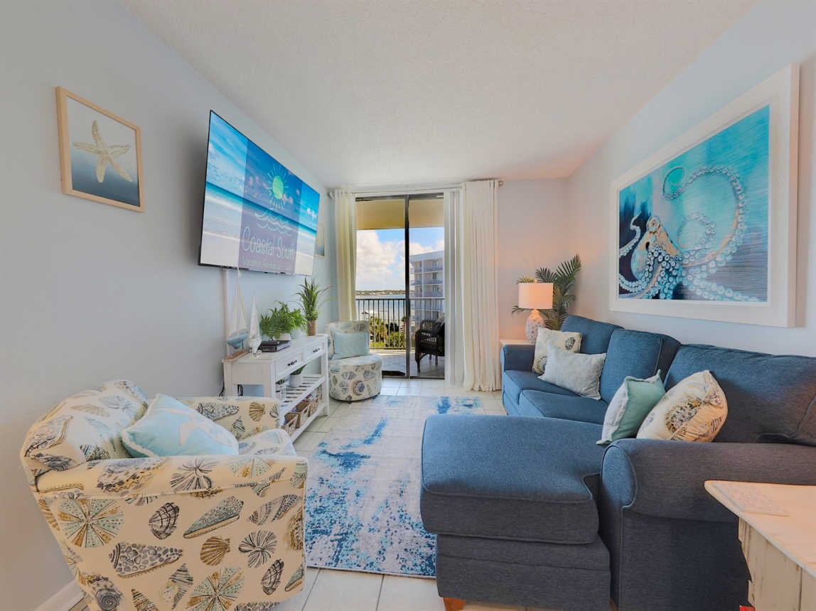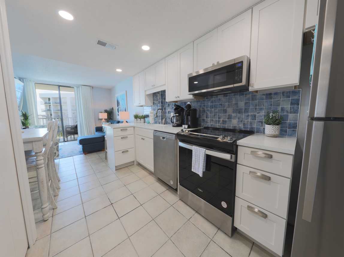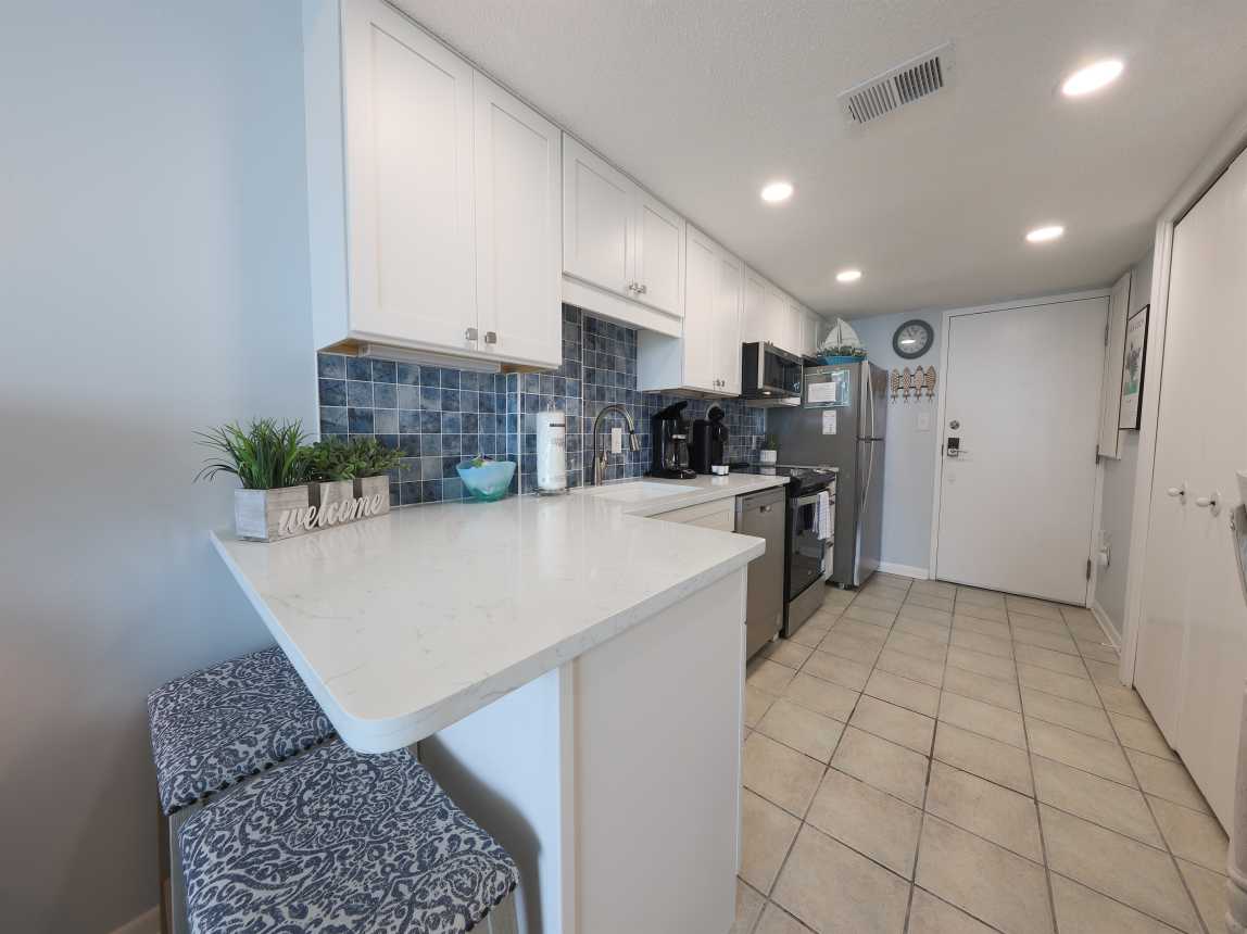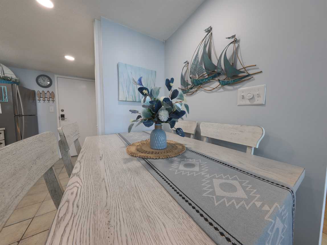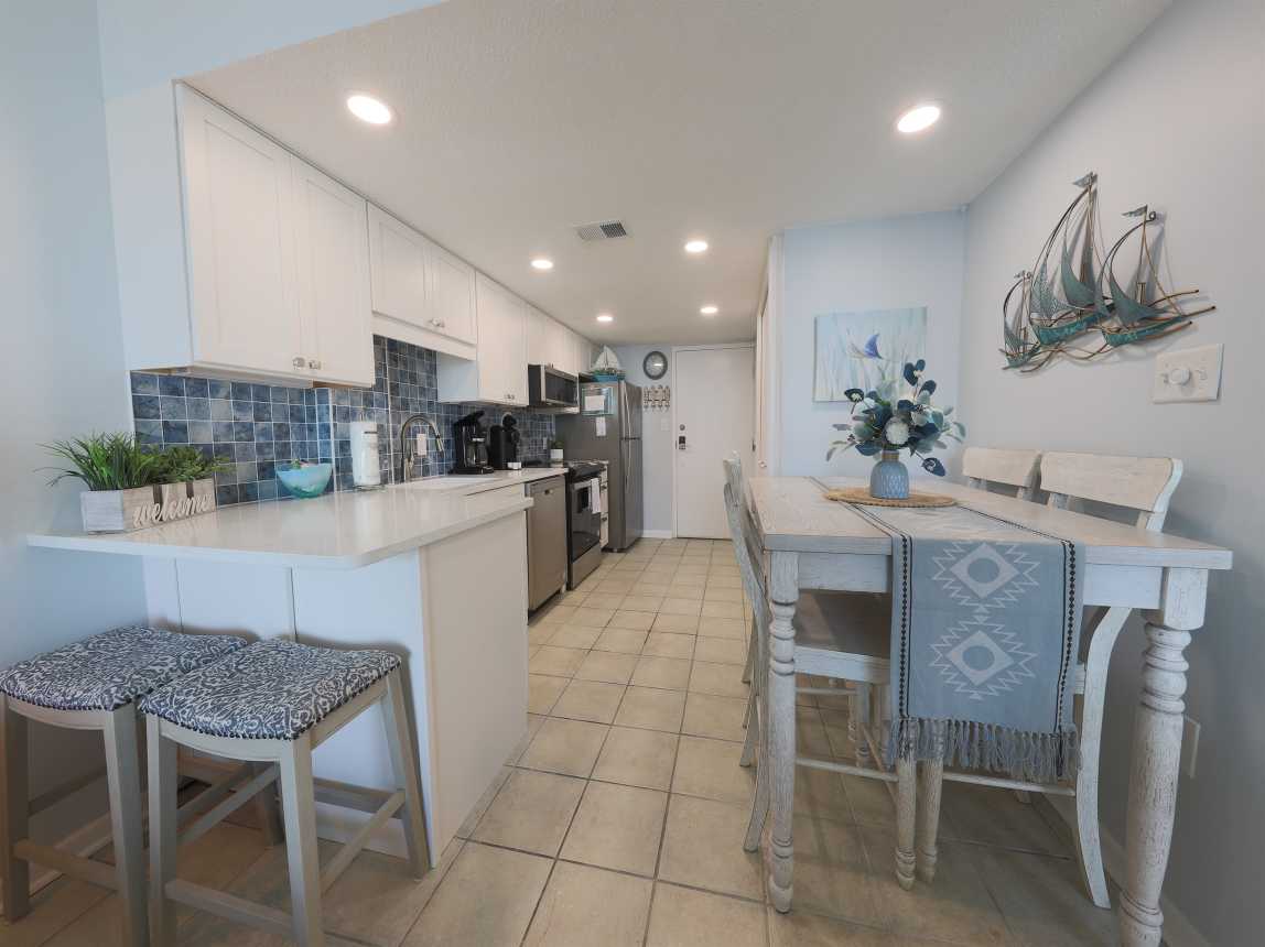 Welcome to Unit 505B at Gulf Shores Surf & Racquet Club, a beautifully updated 2-bedroom, 1-bath condo offering the perfect blend of comfort, style, and convenience. Located on the 5th floor, this condo features stunning views of Little Lagoon from the private balcony with seating for four. The dining table seats 6 with two of the chairs in the closet for added space when not in use.