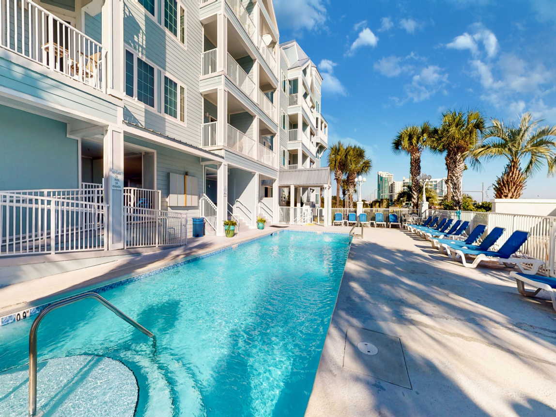 This fresh and beachy condo has an unobstructed view of the beach from across the street. It is conveniently located near a light where you can cross to a dedicated beach access. With 2 bedrooms, bunkbeds and sleeper sofa, it can accommodate up to 8 guests (bunkbeds most suitable for children or small adults), with 2 full bathrooms. This condo is part of our clean bed program. Guests love the feeling of crisp, clean bedding, and we do too. Our Clean Bed program ensures that all bedding, including top layers, is freshly washed for every stay. No reused blankets, no doubts—just a spotless, comfortable experience you can trust.