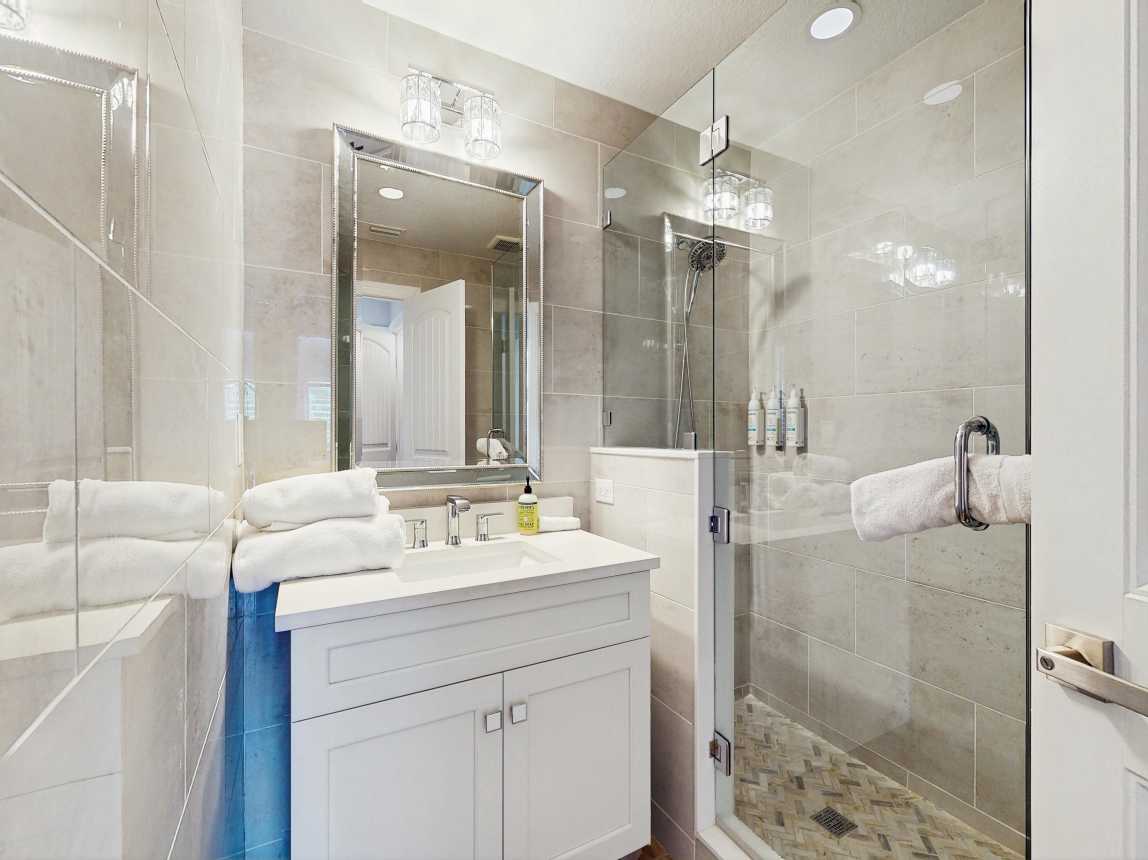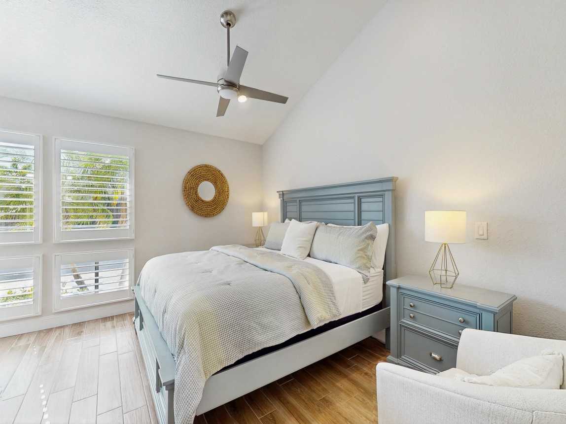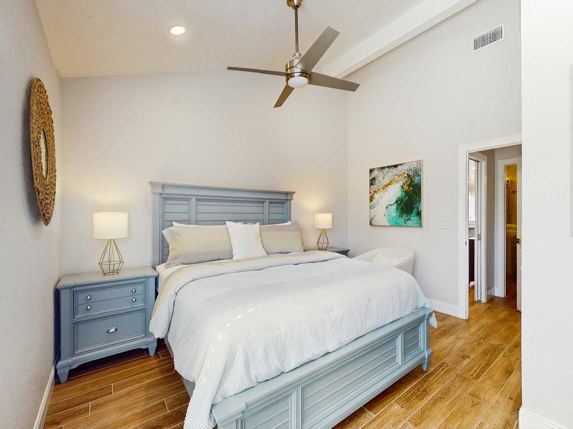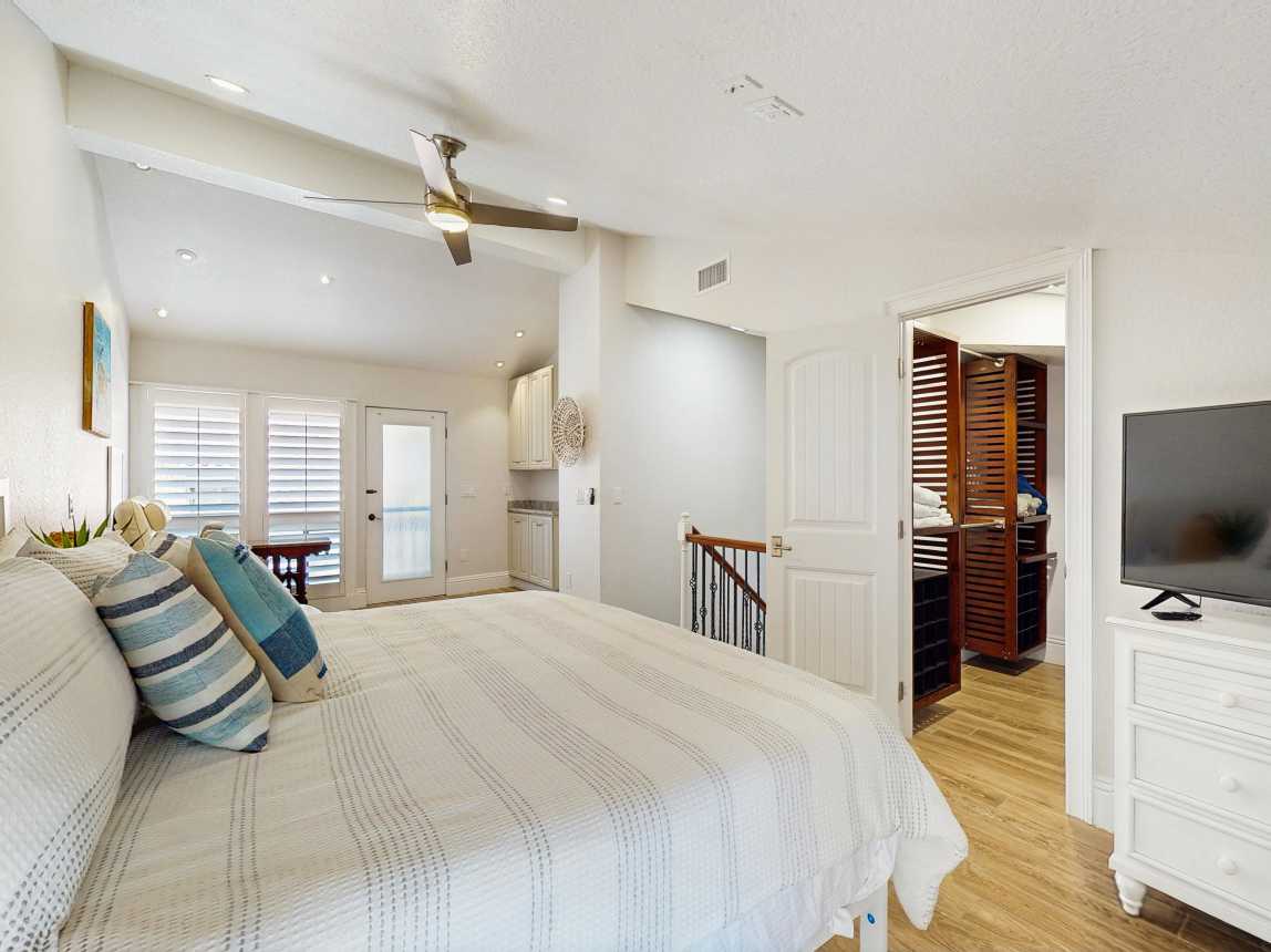 This tasteful coastal home with vaulted ceilings is light, open, and airy. You can relax in the main living space with a sofa and two day chairs. Watch TV after a long day at the beach or set up your laptop/tablet and work remotely at the lovely wooden desk. The ground-level primary bedroom has a large TV and a spectacularly tiled main bathroom with a spacious walk-in shower. A guest bedroom features another TV...