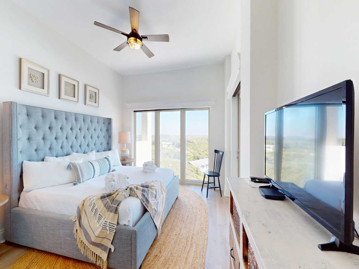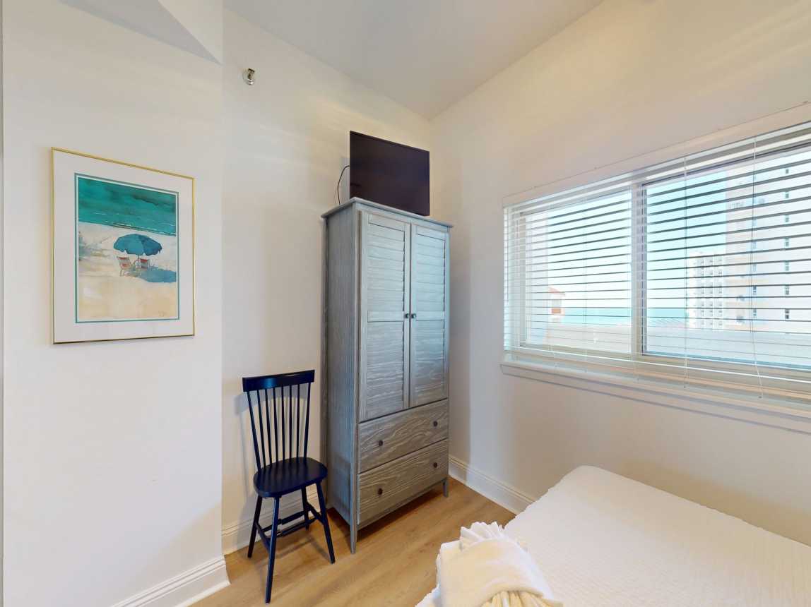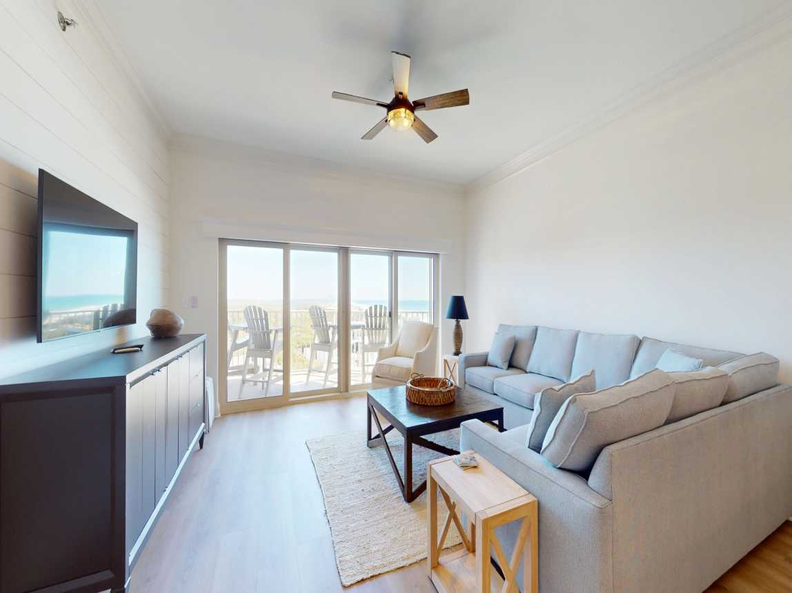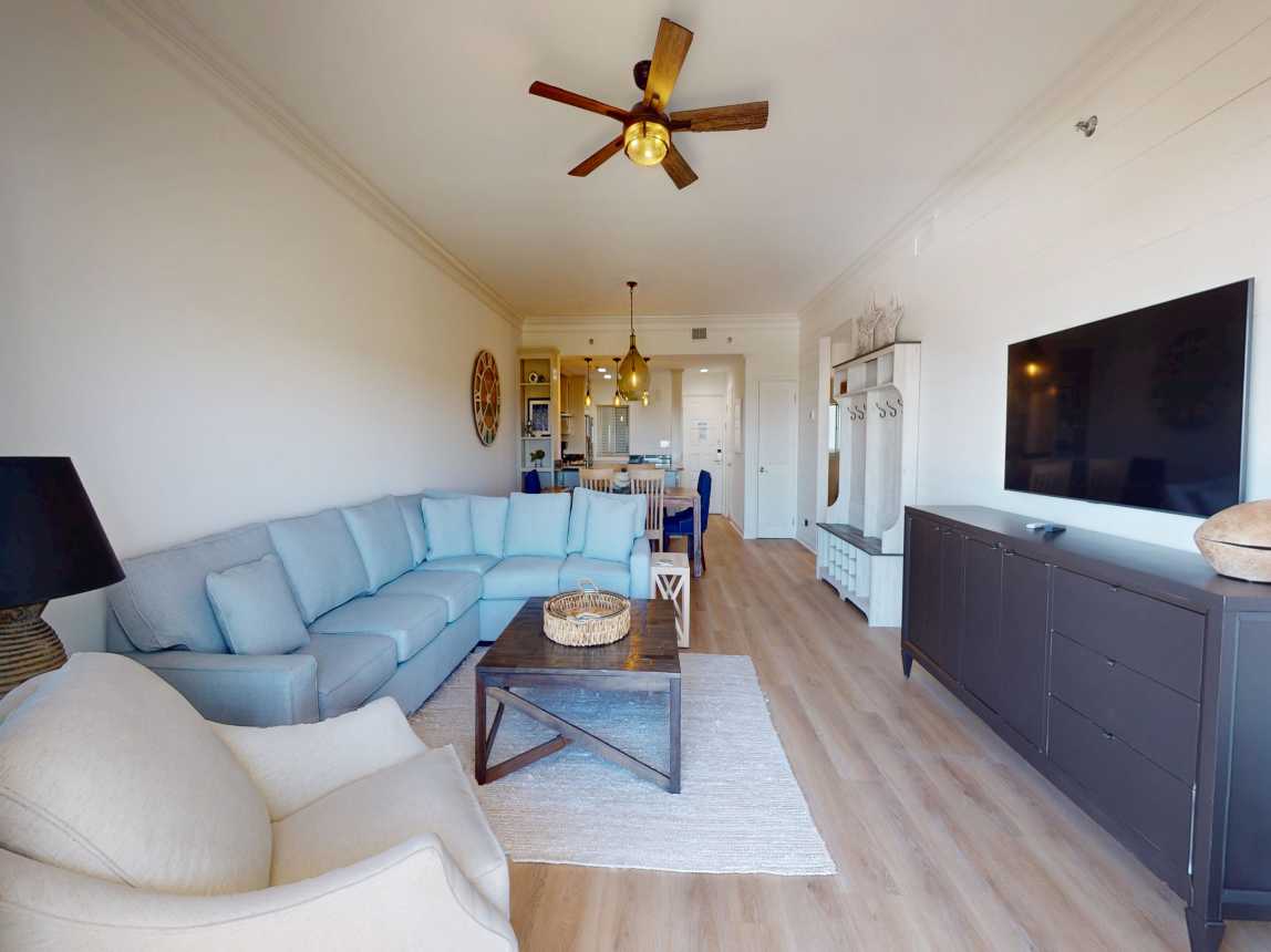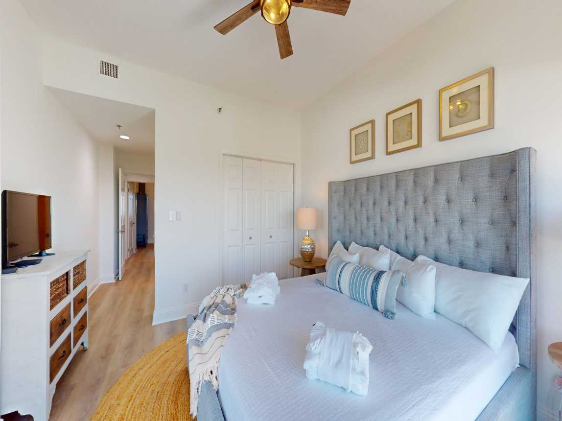 The kitchen features granite countertops, stainless steel appliances, and a breakfast bar, while a washer and dryer add extra convenience. Sleeping up to eight, the condo includes a king bed in the master suite, a queen and twin-over-twin bunk in the guest room, plus a queen sleeper sofa in the living room. The master bath offers a walk-in shower and double vanity, while the guest bath has a shower/tub combo.