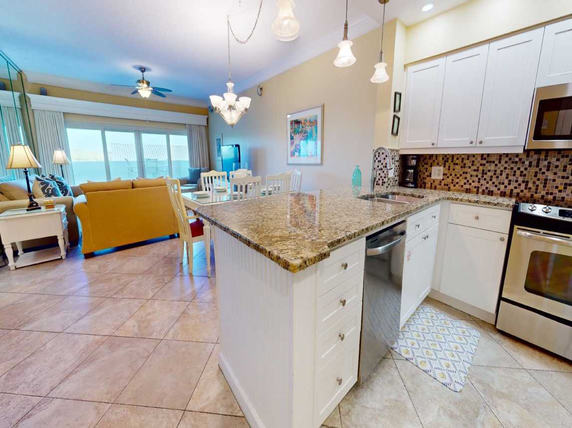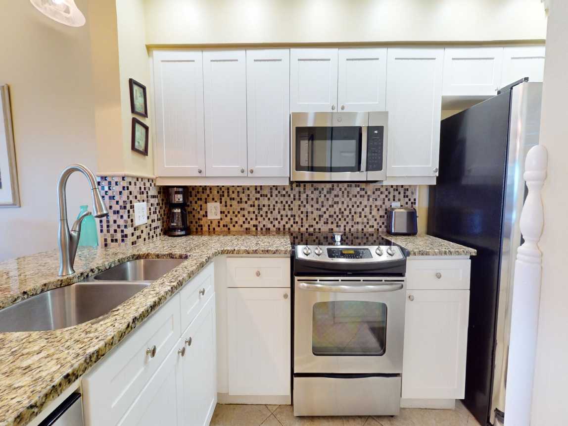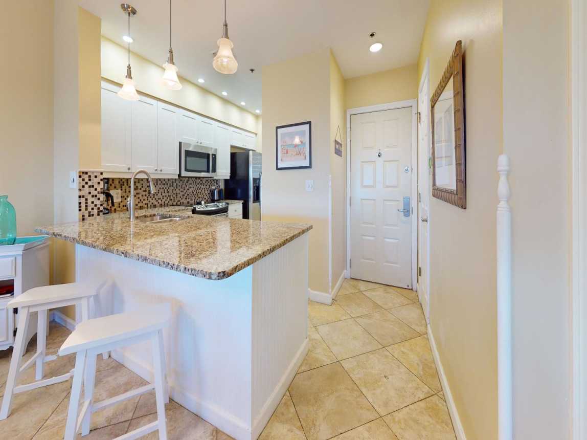 The modern kitchen comes fully equipped with everything you need for dining in. Whether you’re preparing a quick breakfast or a full dinner, you’ll have all the essentials at hand. This condo als...