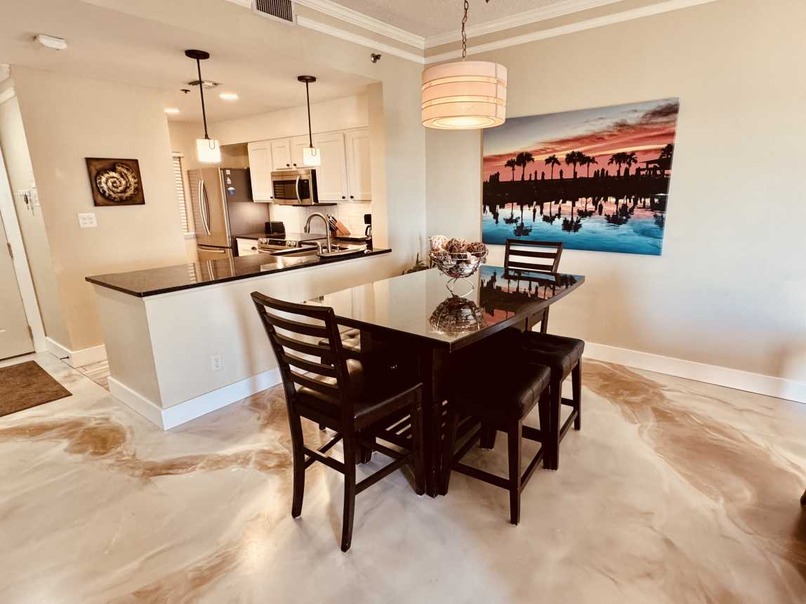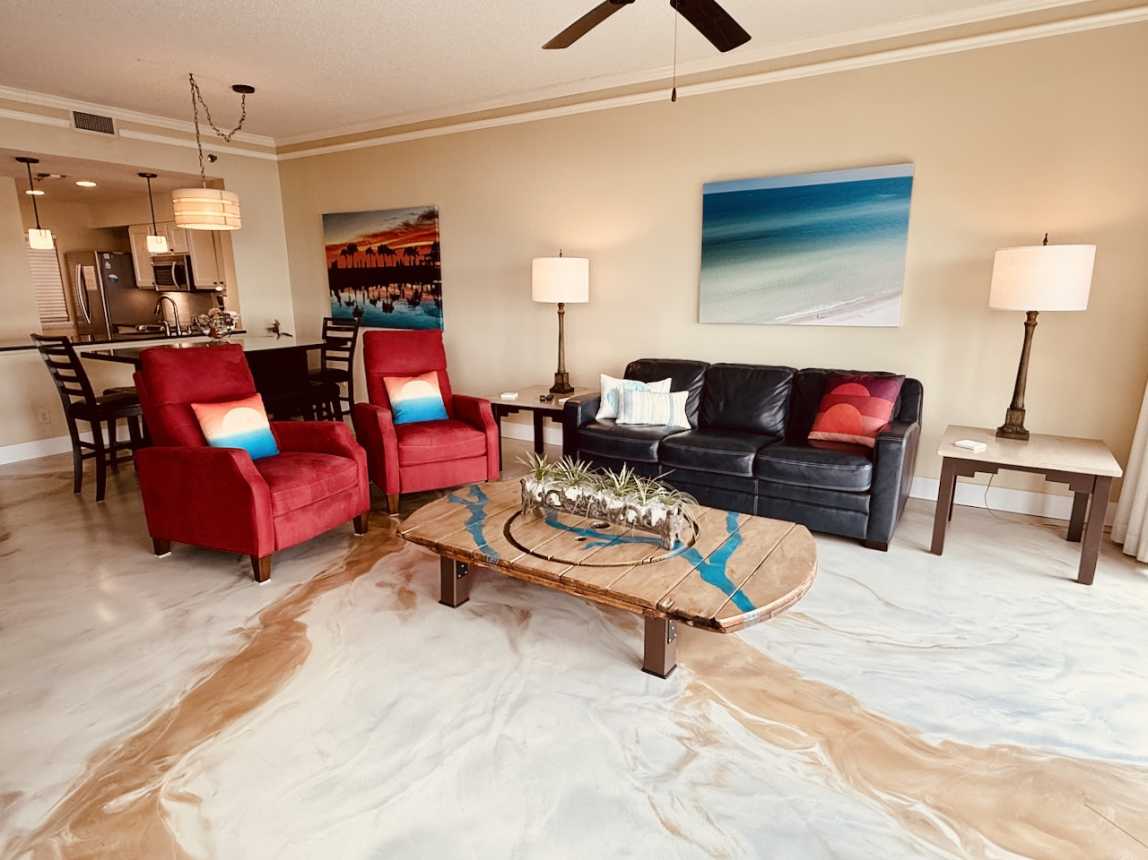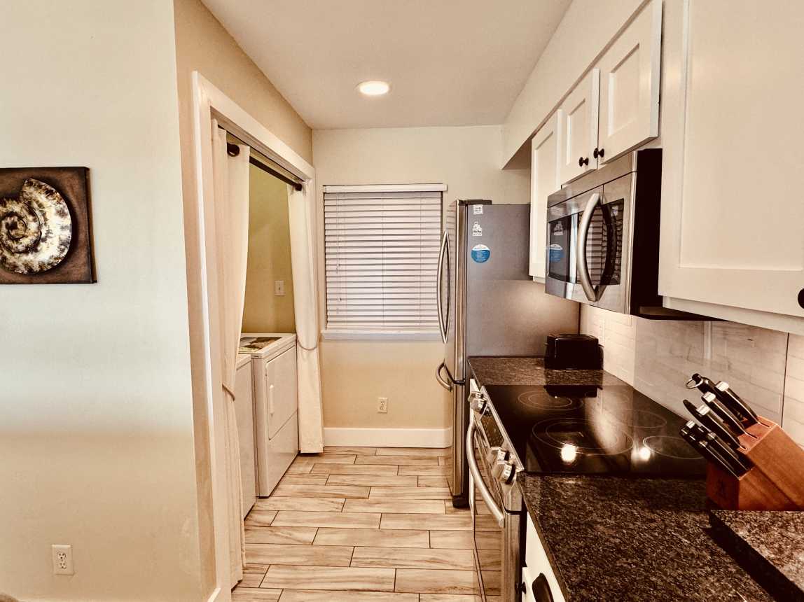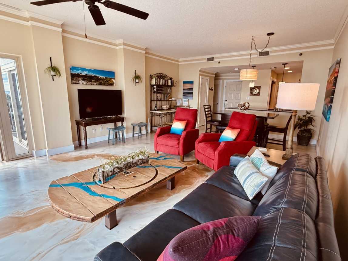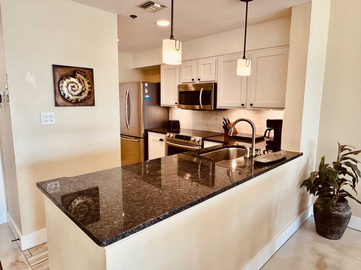 Inside, this beautifully updated condo features new décor, artwork, and flooring throughout, plus plush recliners in the living room and smart HDTVs in every room. The remodeled kitchen comes fully equipped for home-cooked meals, complemented by a high-top dining table for six.