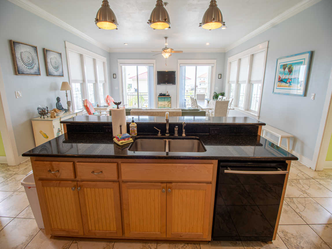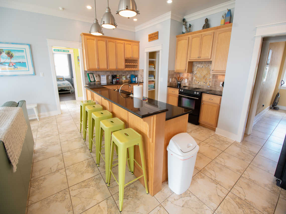 The open living/dining/kitchen is bright, airy and accommodating. A large, spacious and fully stocked kitchen with ample counter space makes preparing and cooking meals a breeze. Eat in at the breakfast bar and dining room table, or enjoy a meal outdoors in the sun at the picnic table downstairs. A convenient laundry room is located just past the kitchen, with a full size washer and ...
