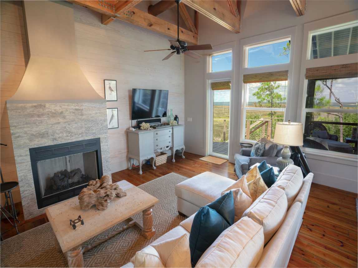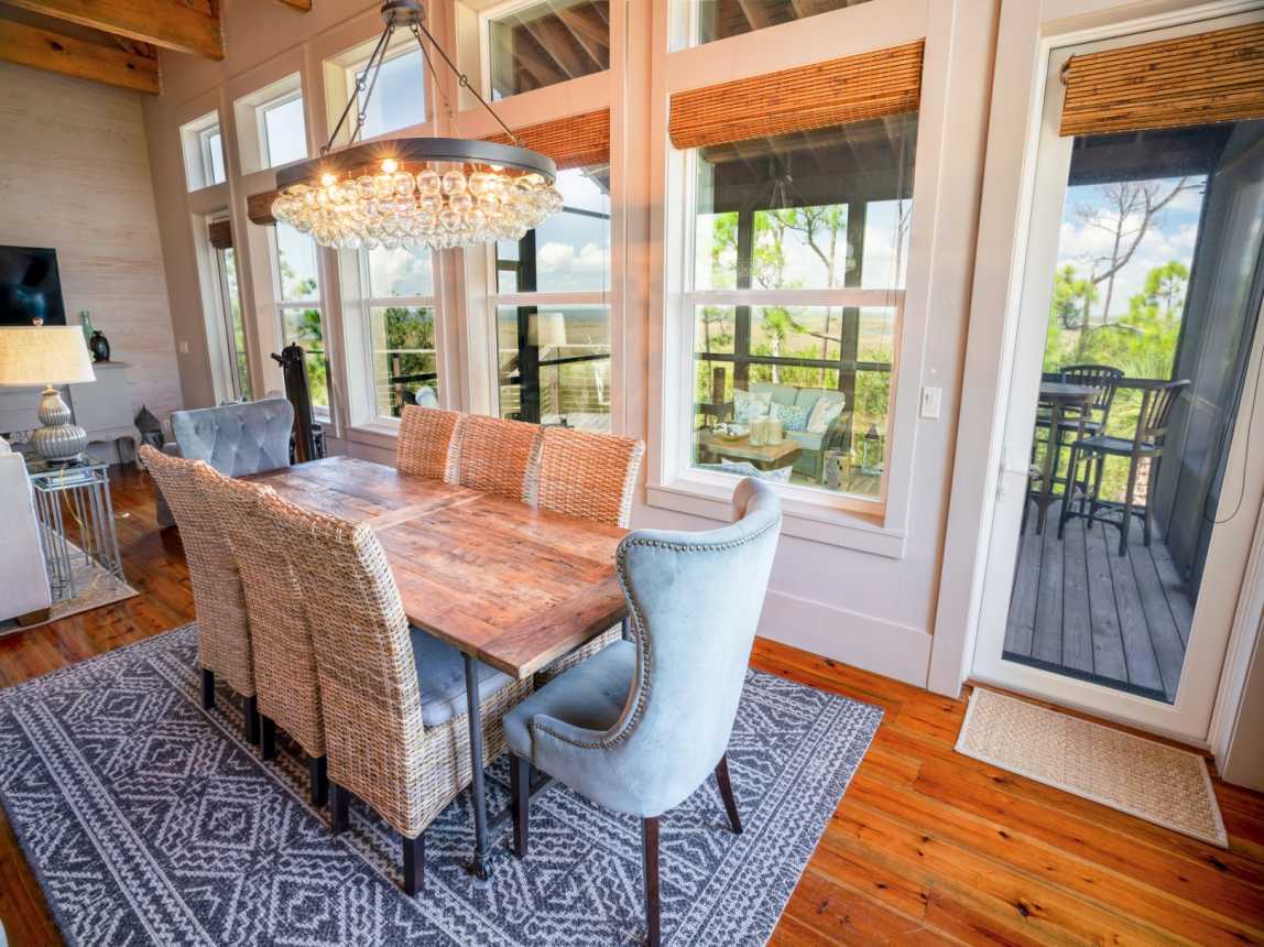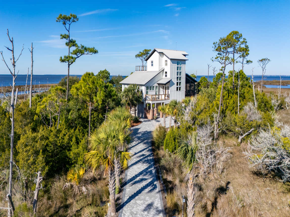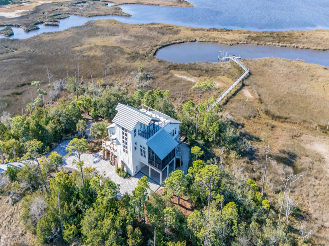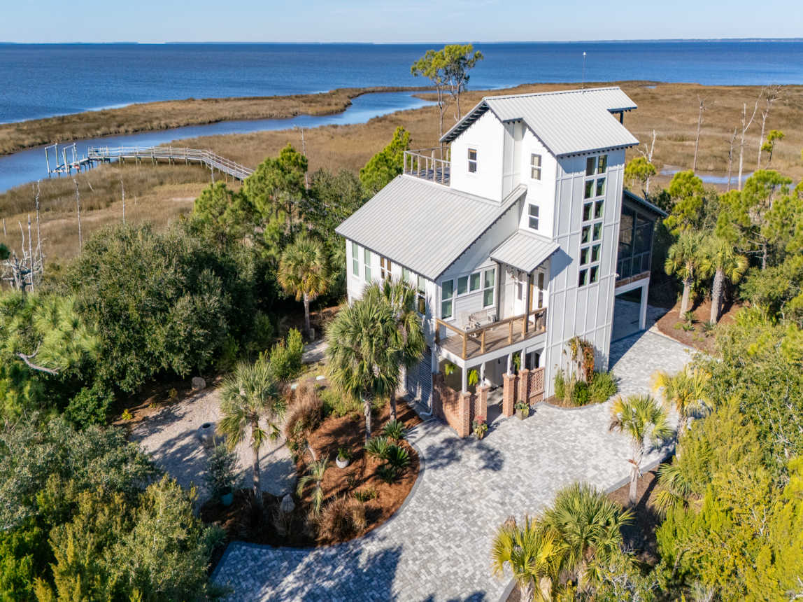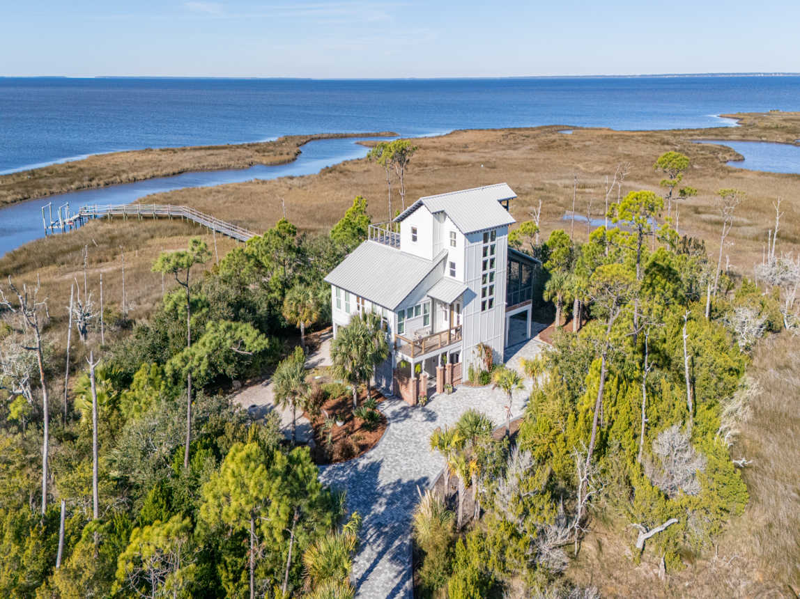 Welcome to Forcynthia, a hidden gem along the coast of the Apalachicola Bay! This stunning custom 4BR/4.5BA home offers Bay vistas from every room with panoramic views from the top floor deck.