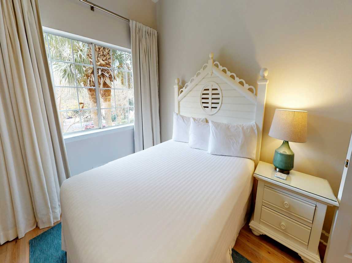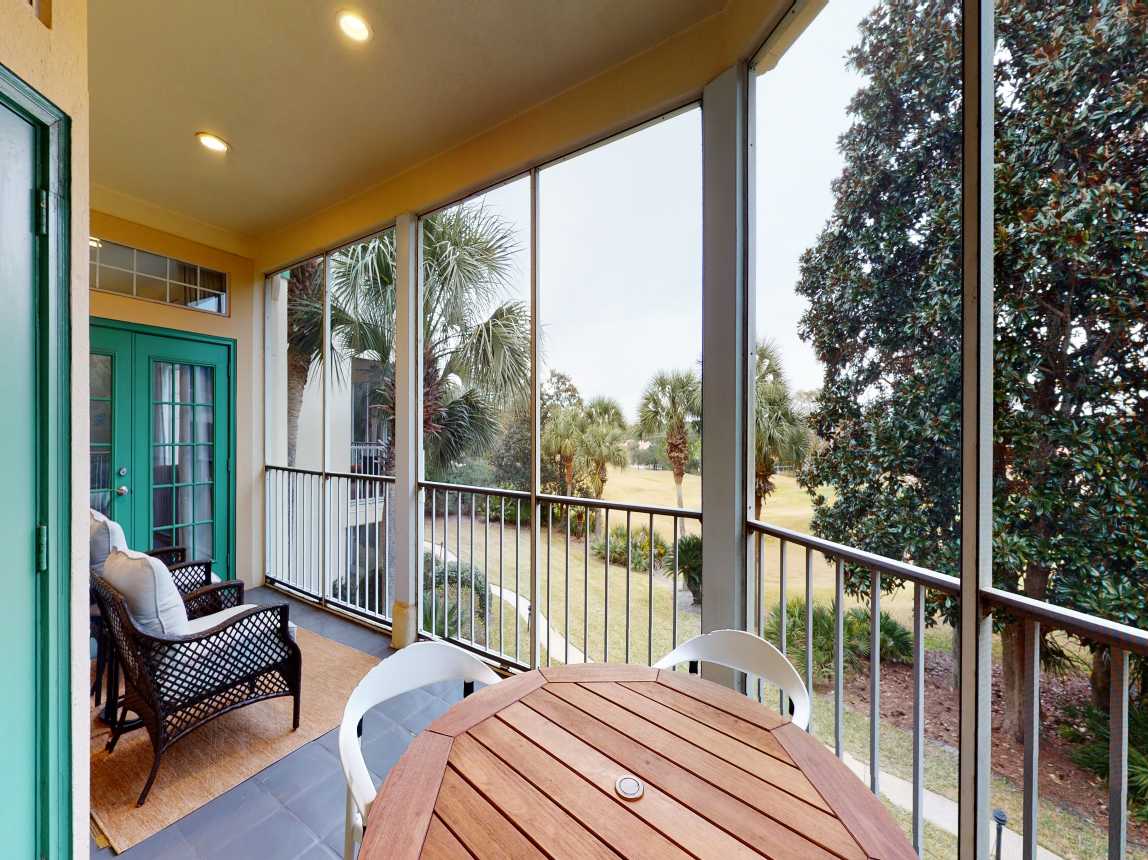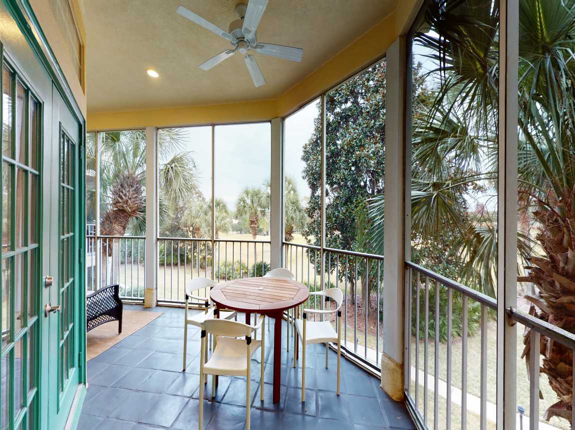 As an end unit, the home features a private entryway leading up to a bright and open main level. Sip your morning coffee on the screened-in patio overlooking the serene golf course or unwind in the spacious living area with plenty of natural light. The well-equipped kitchen and dining area provide everything you need to enjoy family meals at home, and a washer/dryer, beach chairs, and an umbrella are provided for your convenience.