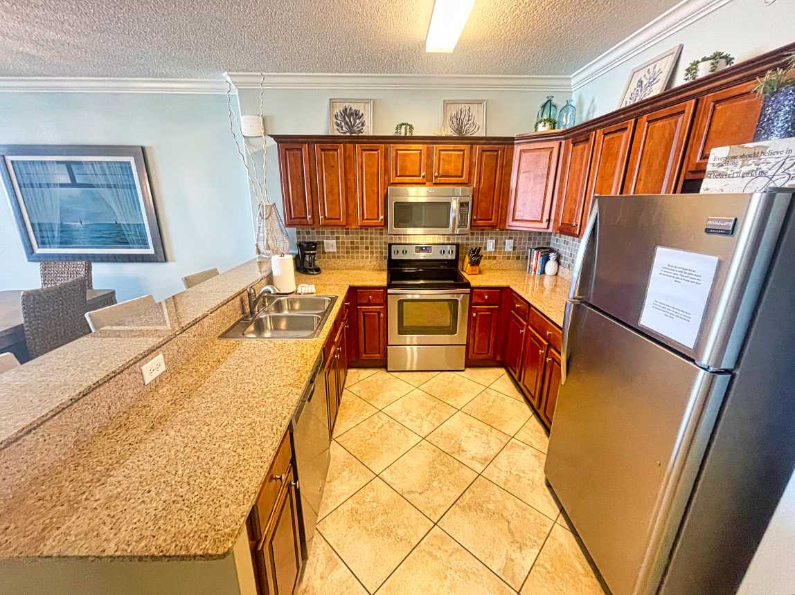 Come enjoy this awesome beach-front, west-end, condo with beautiful coastal views! The master bedroom includes king bed and balcony access. The living room adjoins the balcony and provides beach and gulf views. This is a low-floor, end unit!